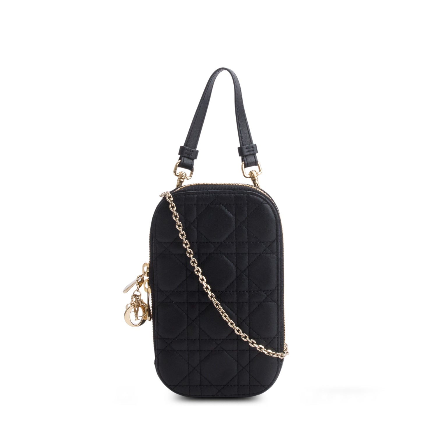 2020 Black Cannage Lambskin Lady Dior Call'in Dior Phone Holder w/ Straps