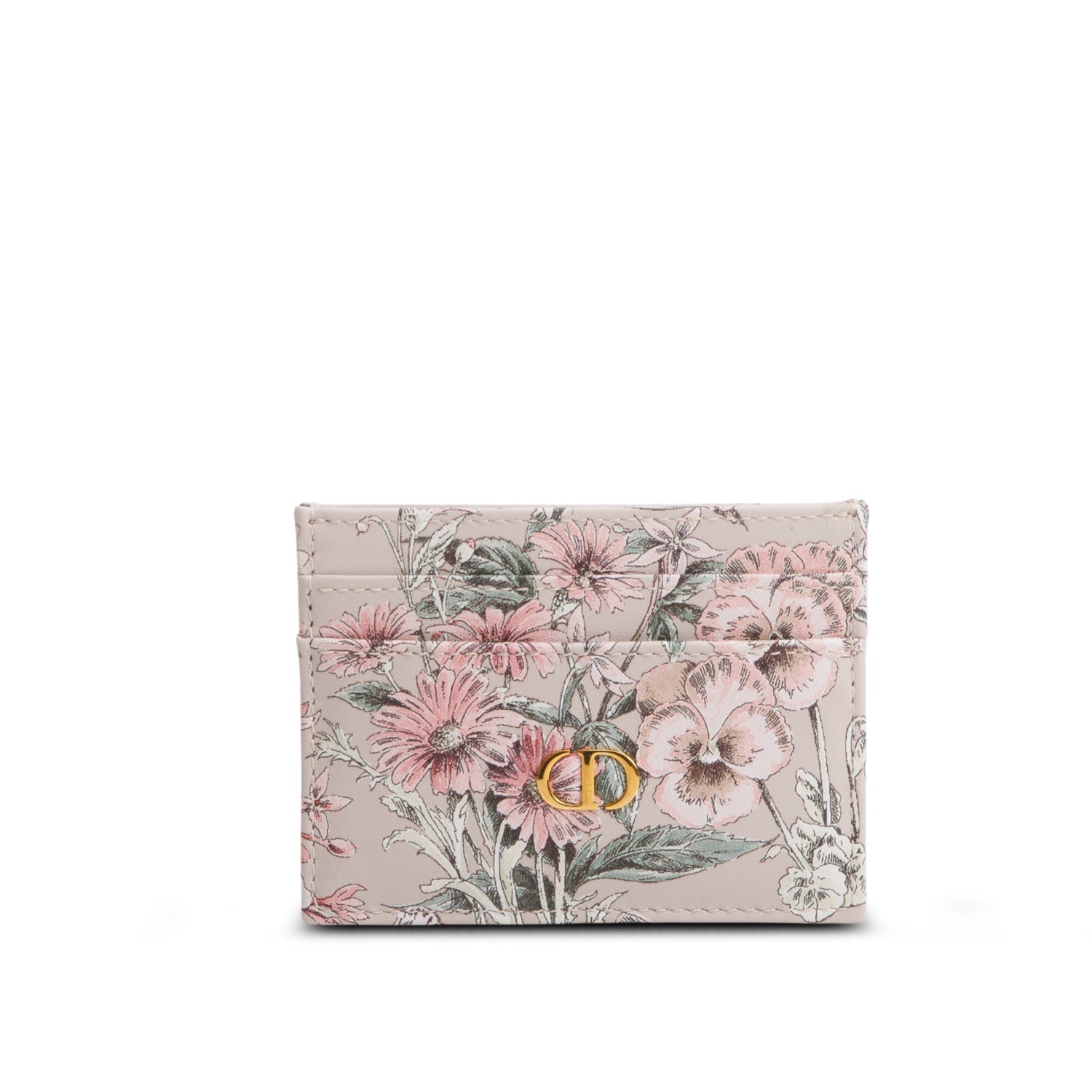 2025 Beige Multicolor Printed Leather Caro Freesia Card Holder w/ Box