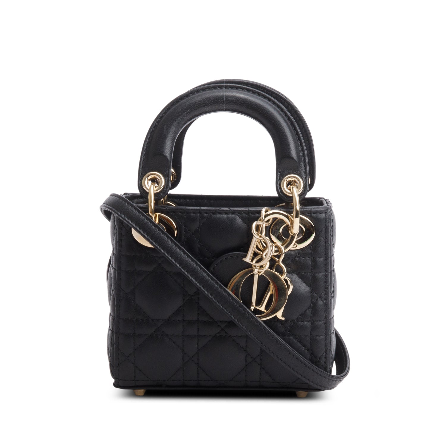 2023 Black Lambskin Cannage Micro Lady Dior w/ Box, Strap & Authenticity Card