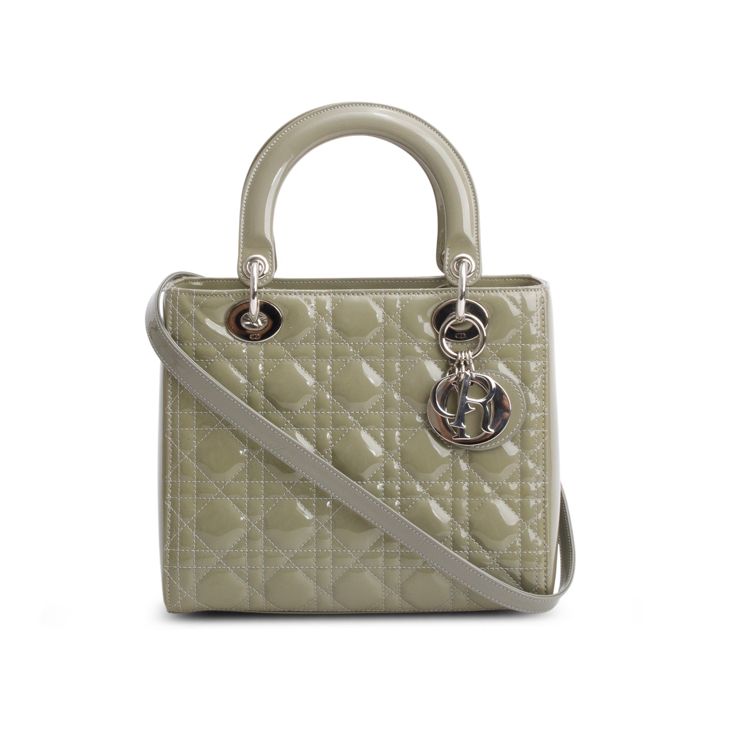 Green Cannage Patent Leather Medium Lady Dior Bag w/ Strap