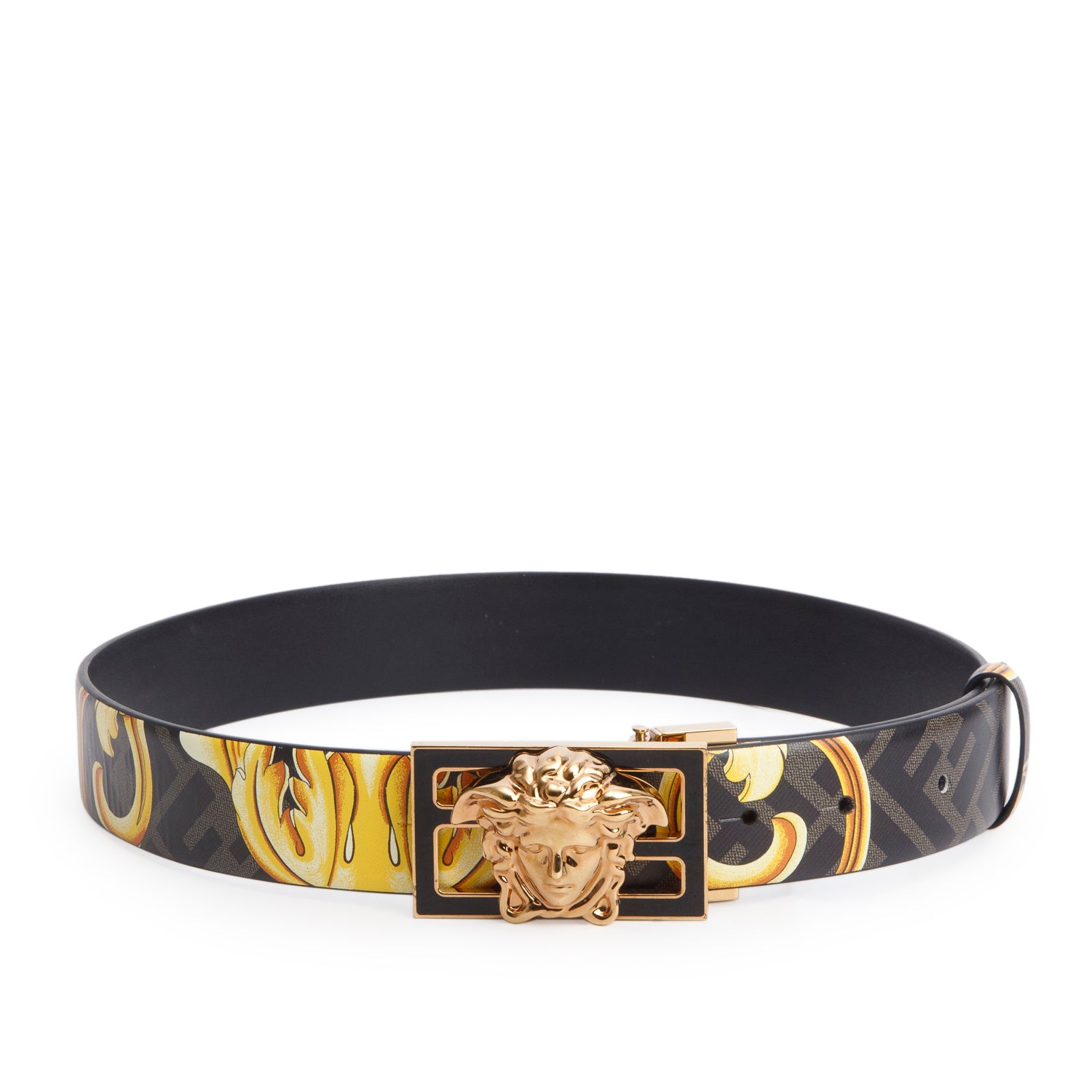 Versace x Black/Logo Baroque Calfskin Reversible Belt 75