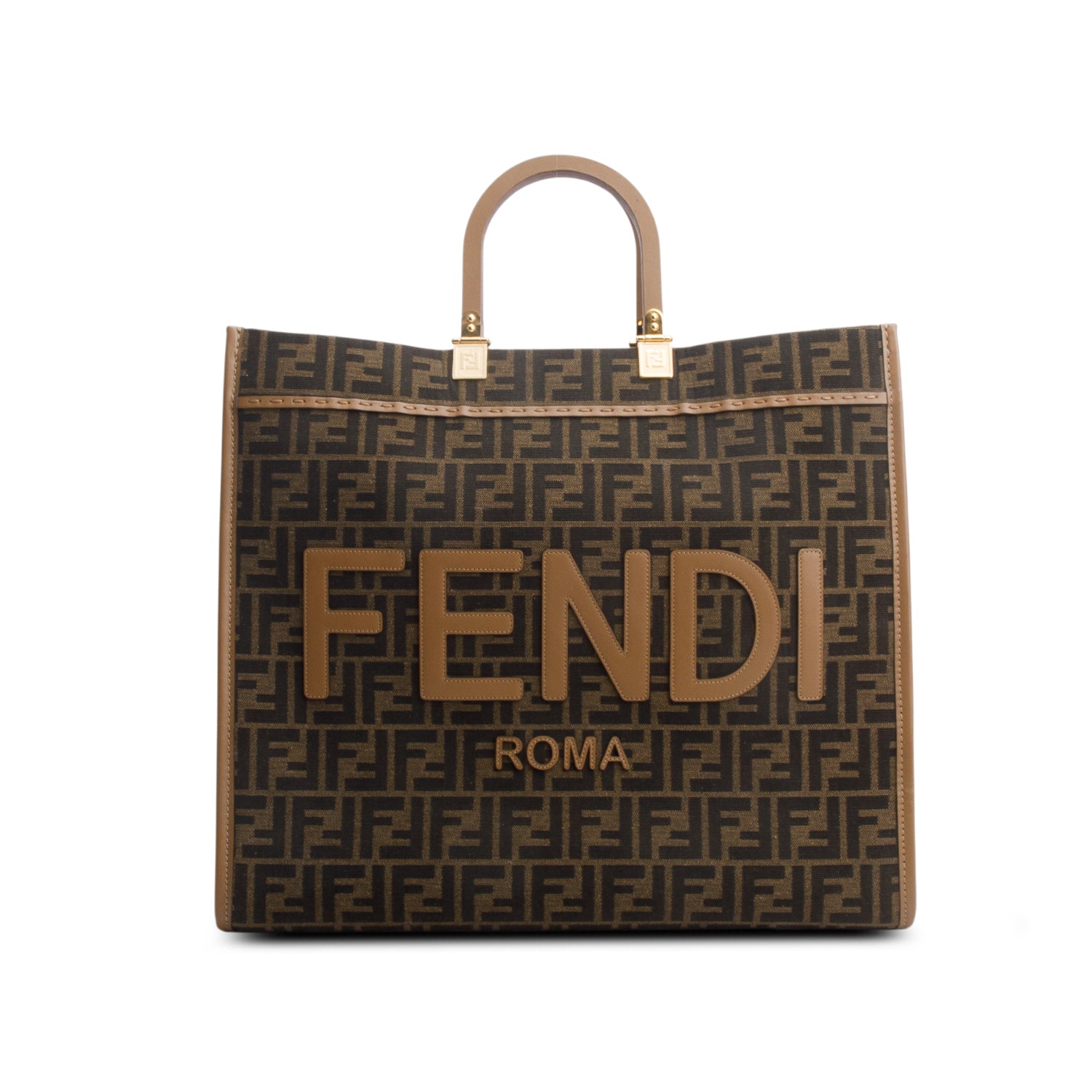 Brown Jacquard FF 1974 Logo Large Sunshine Shopper Tote
