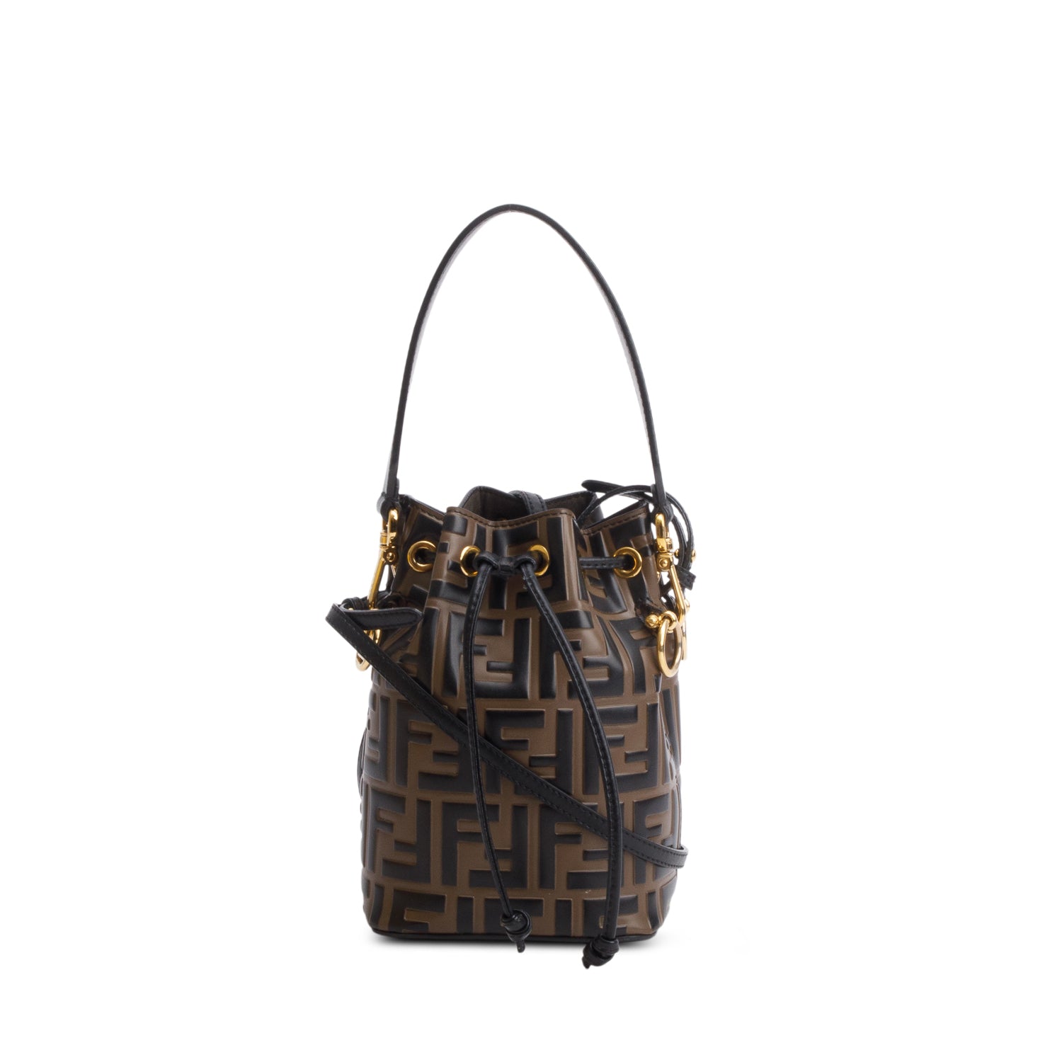 Brown/Black Vitello Liberty F is FF 1974 Embossed Mini Mon Tresor Bucket Bag w/ Box & Straps