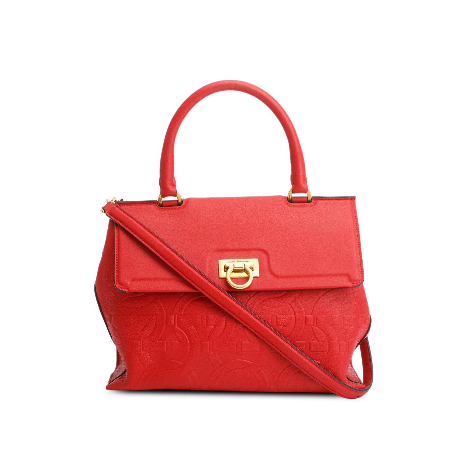 Salvatore Red Leather Trifolio Top Handle Bag w/ Strap