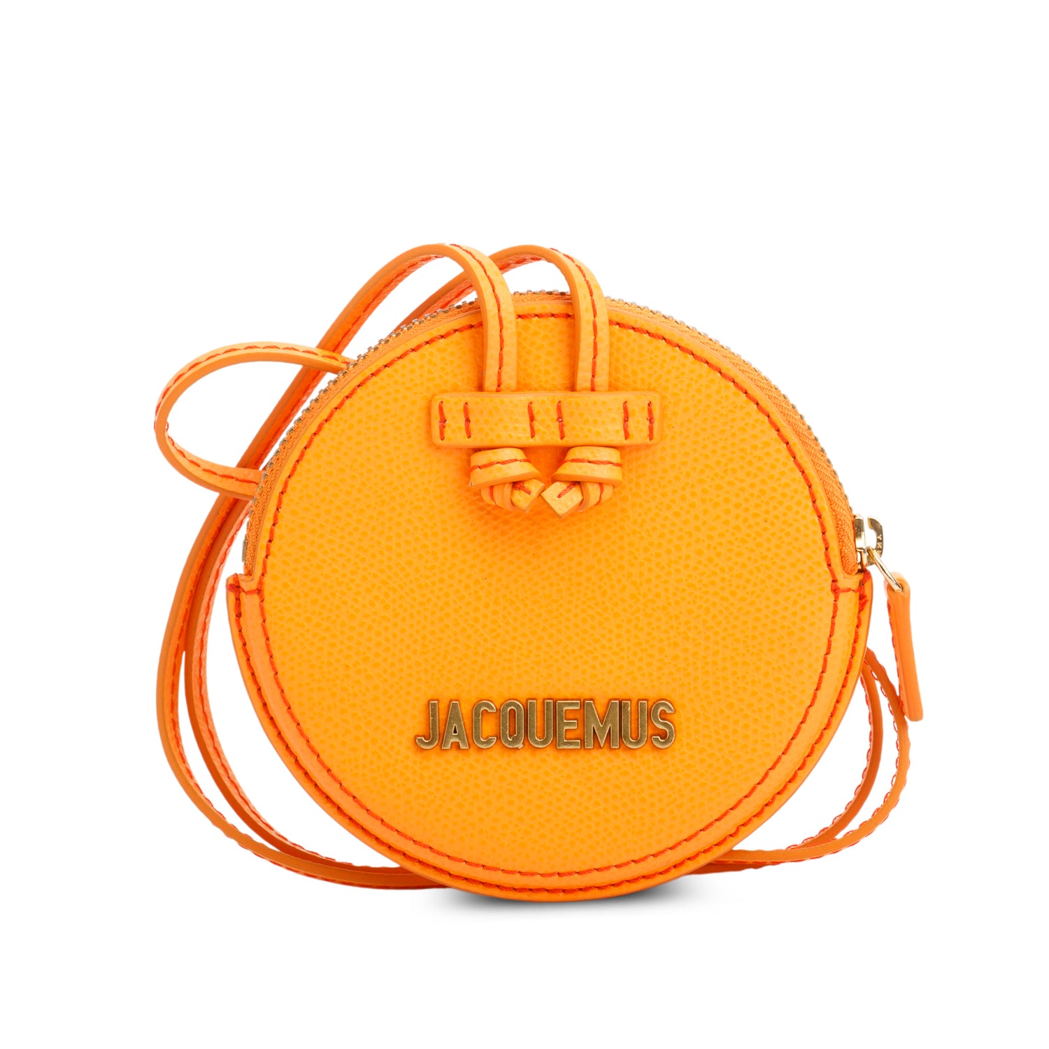 Orange Pebbled Leather Le Pitchou Circle Neck Pouch