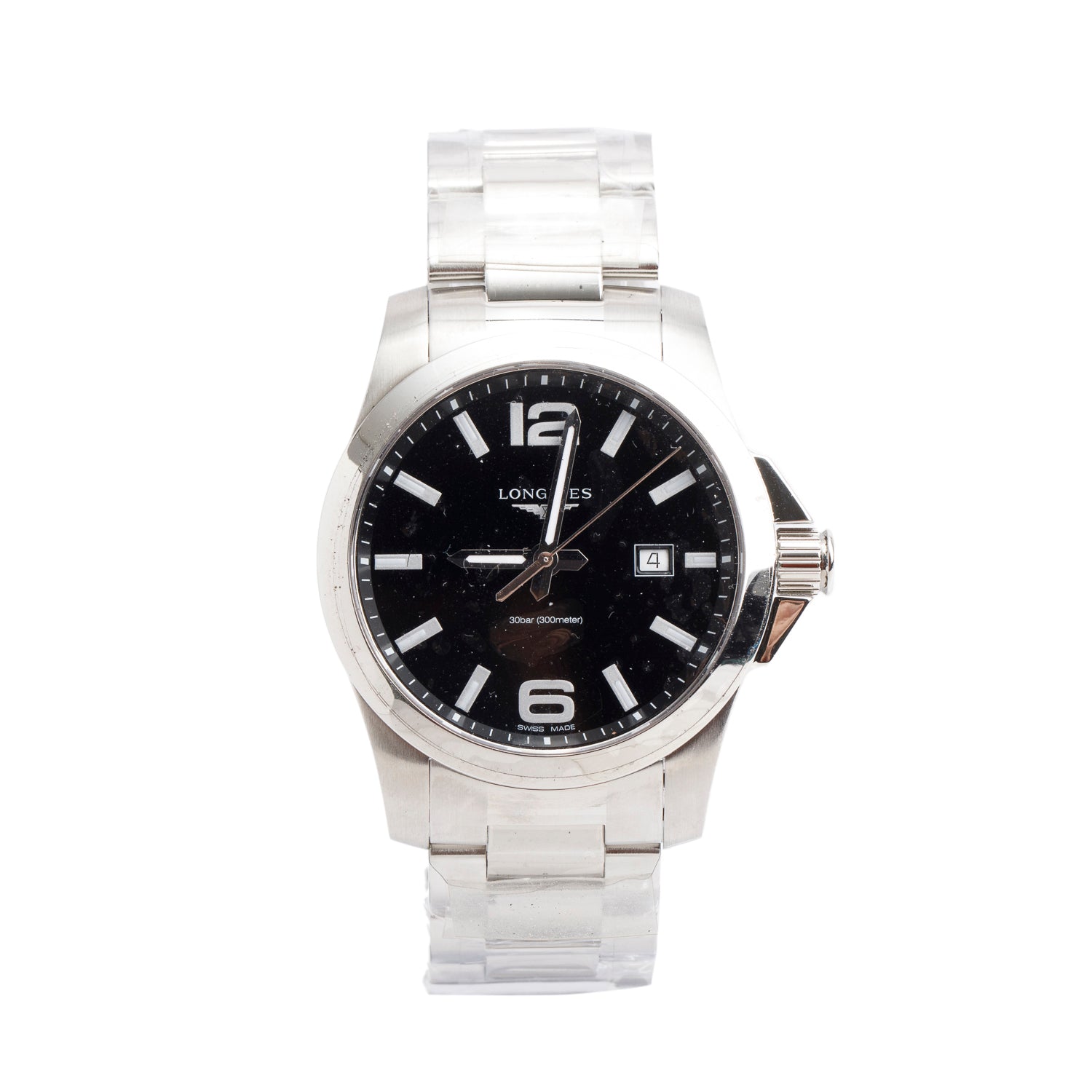 2021 Stainless Steel Conquest 43 MM Quartz Watch Black Dial w/ Box & Papers