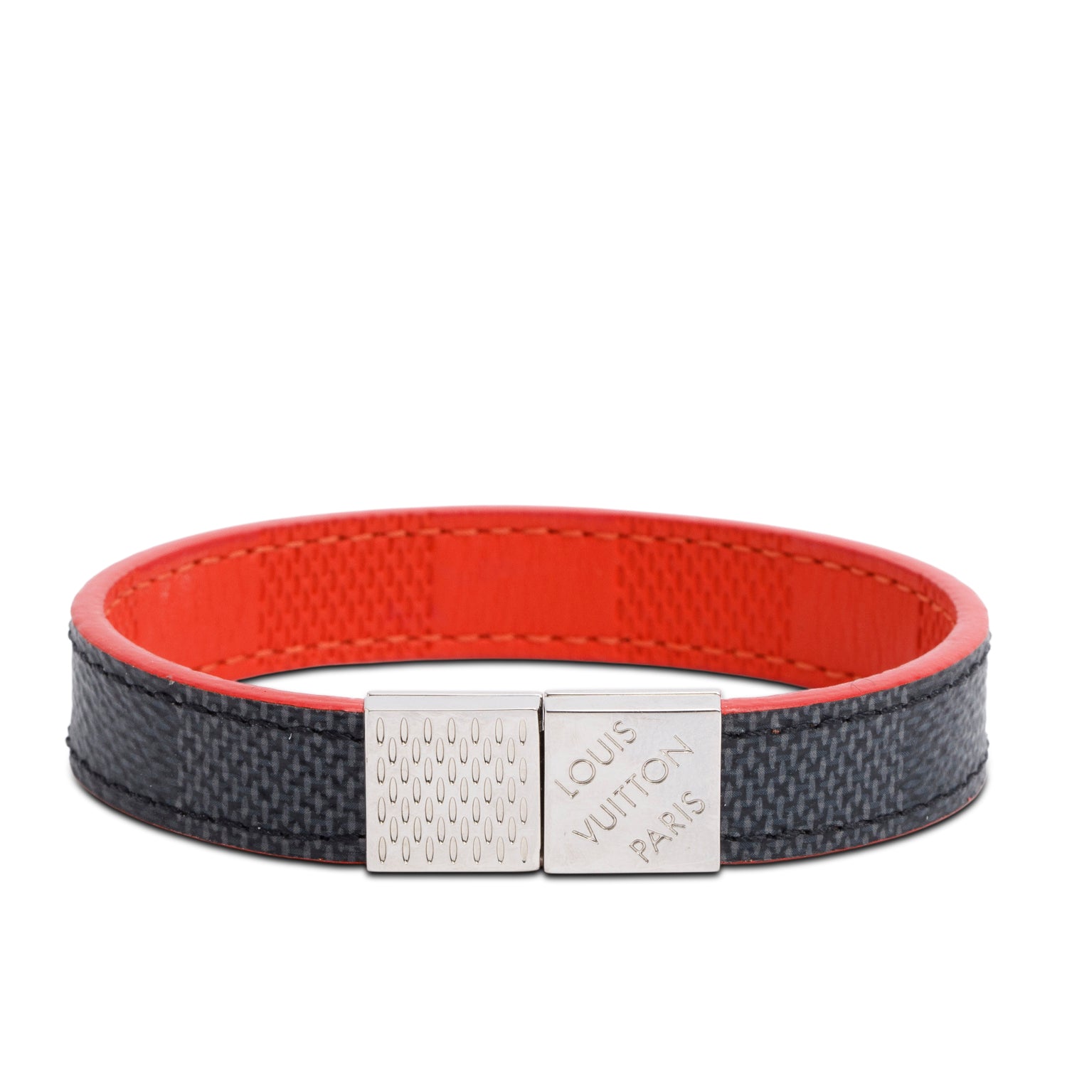 Damier Graphite Red Leather Pull It Reversible Bracelet w/ Box
