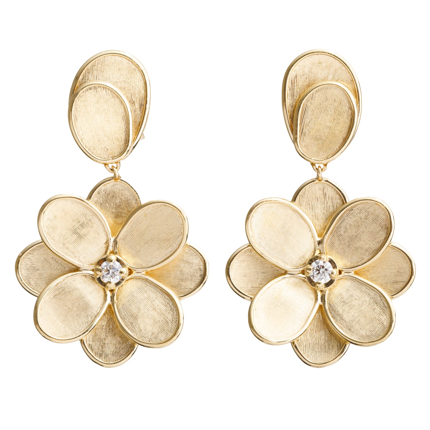 18k Yellow Gold Diamond Petali Drop Earrings w/ Box