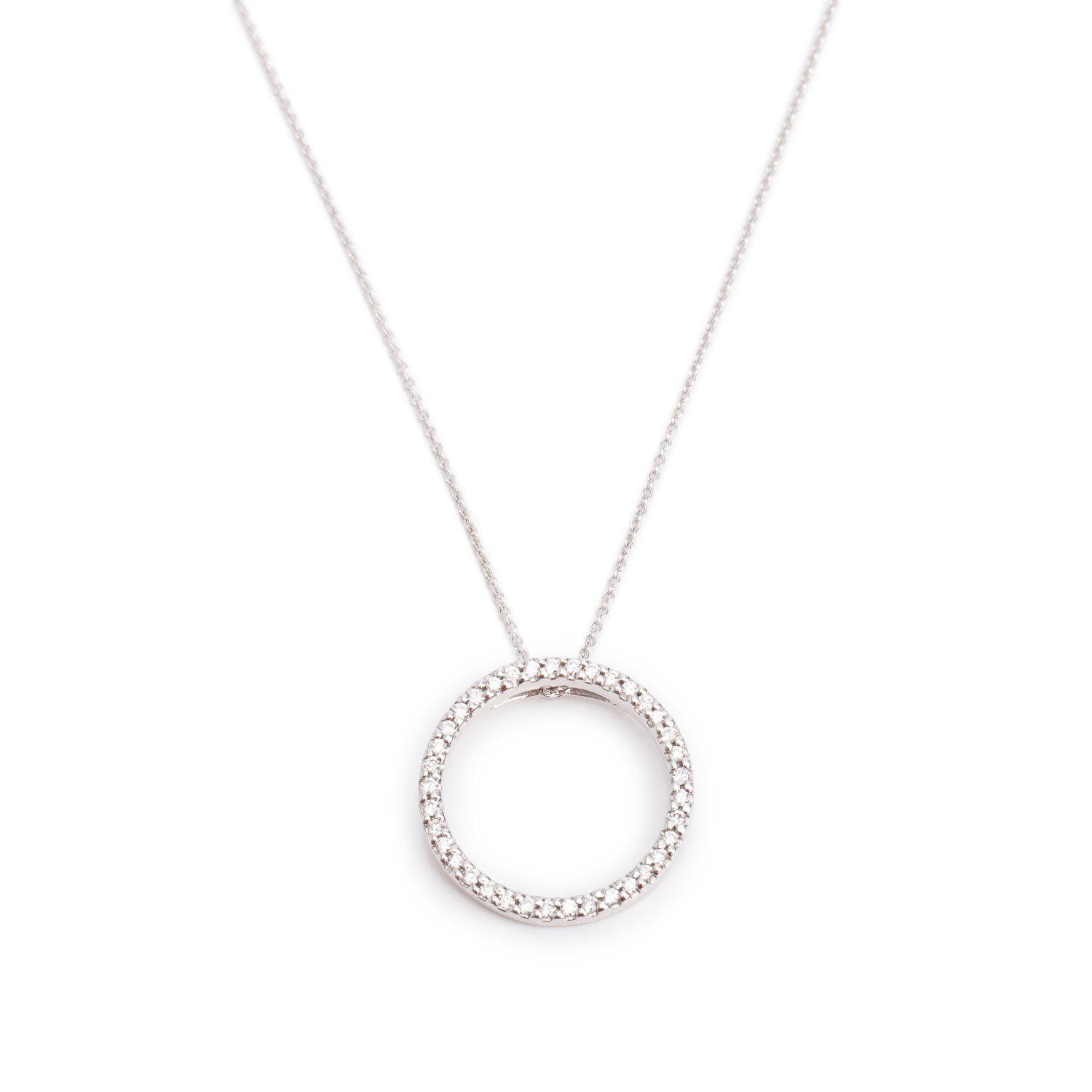 18k White Gold Diamond Tiny Treasures 20 MM Circle of Life Pendant Necklace