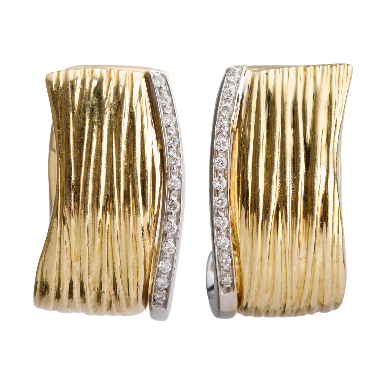18k Yellow & White Gold Diamond Textured Huggie Earrings