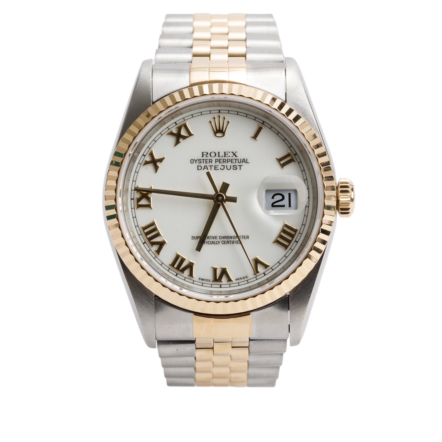 Stainless Steel & 18k Yellow Gold Datejust 36 MM Automatic Watch White Dial 16233 w/ Box & Papers