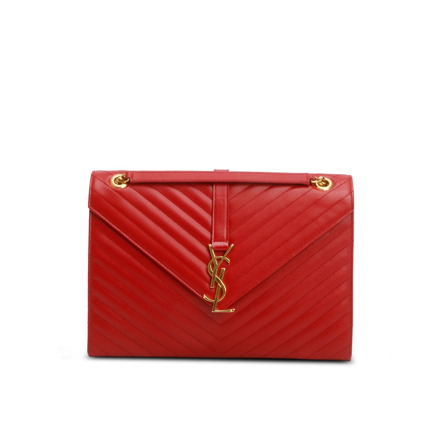 Red Chevron Grain De Poudre Leather Large Envelope Chain Bag