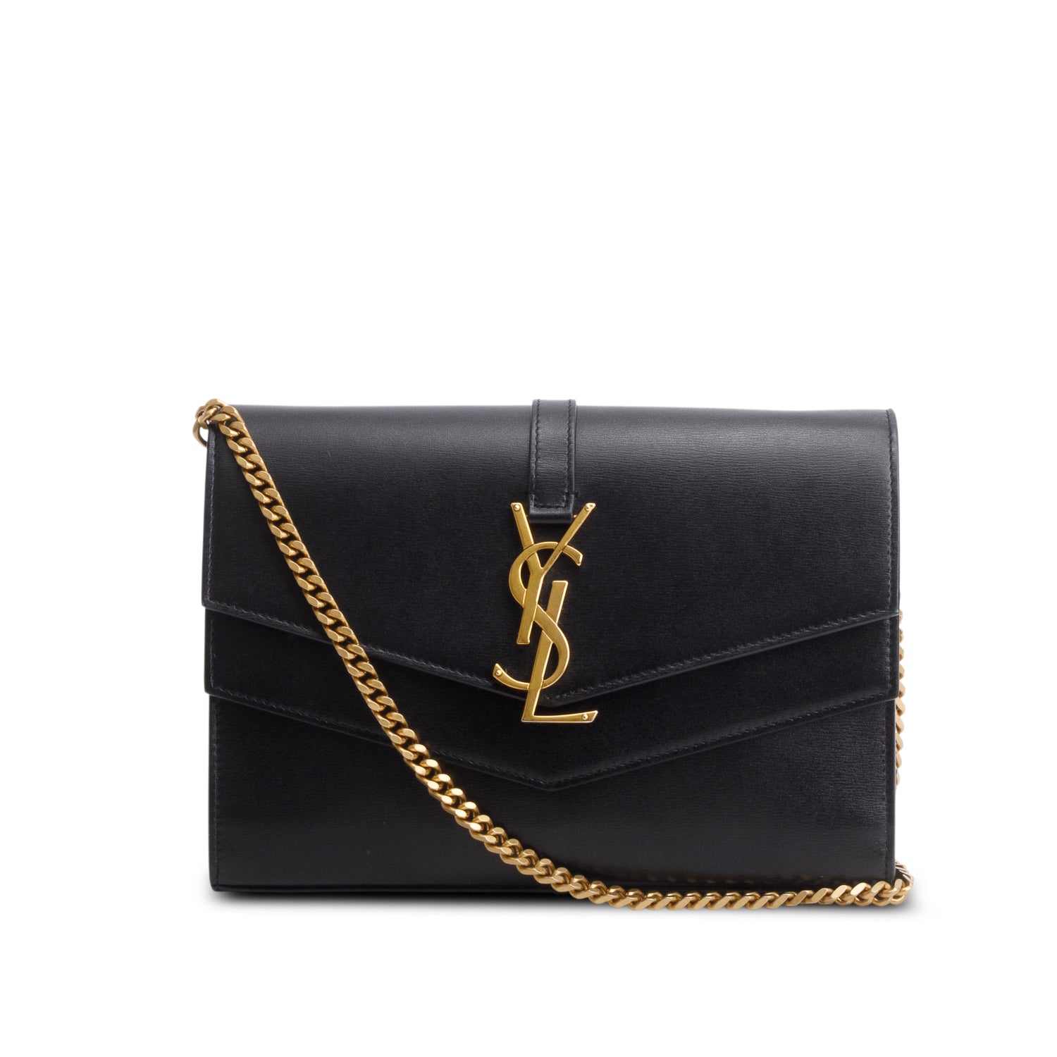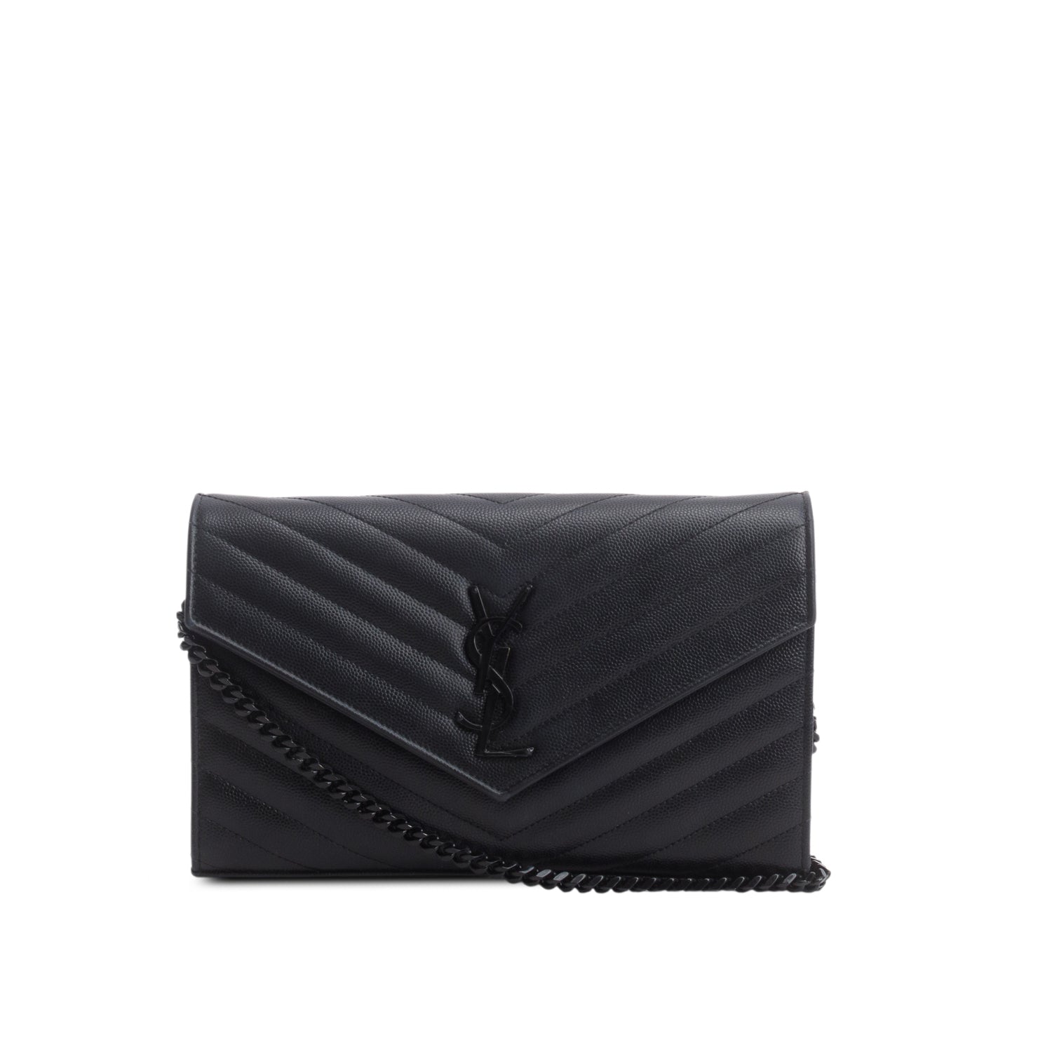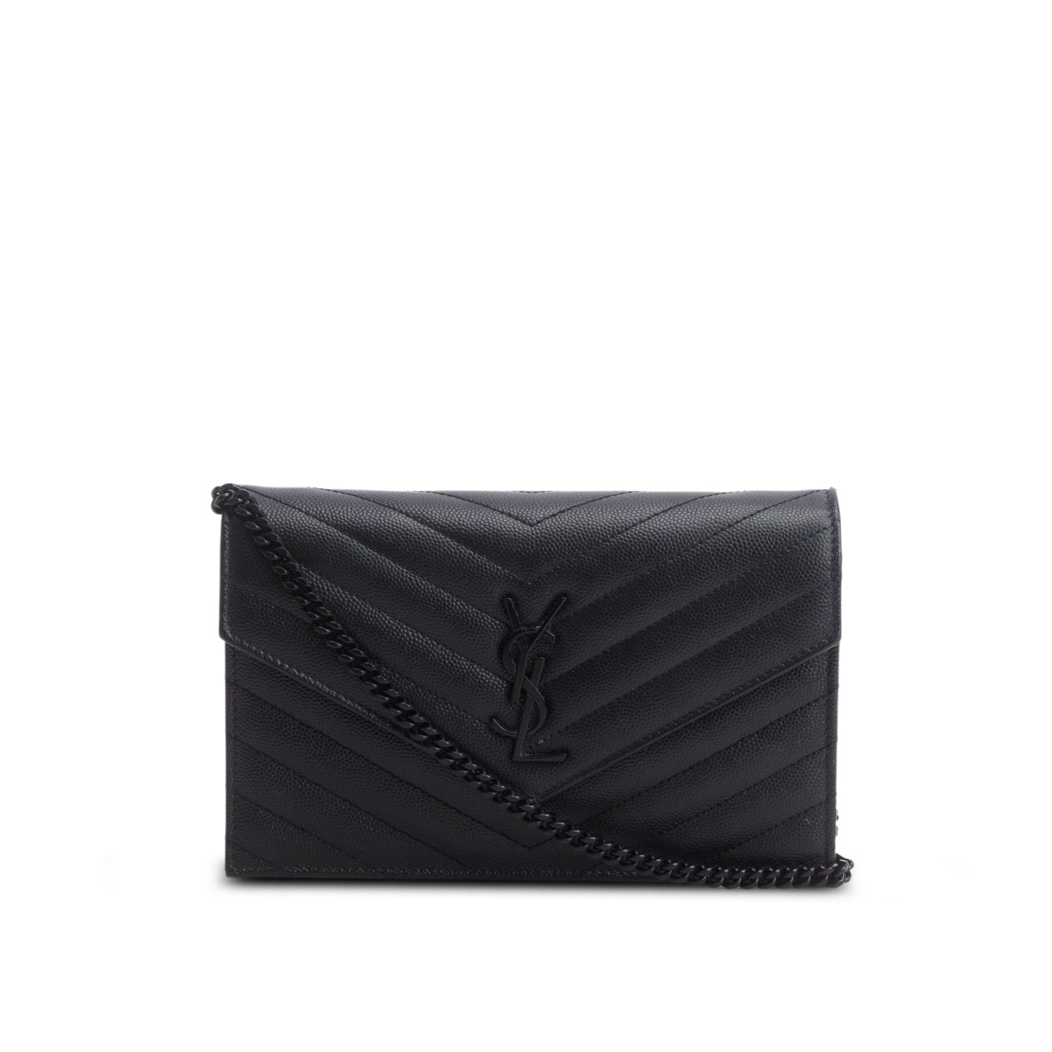 So Black Grain De Poudre Leather Classic Cassandre Envelope Chain Wallet