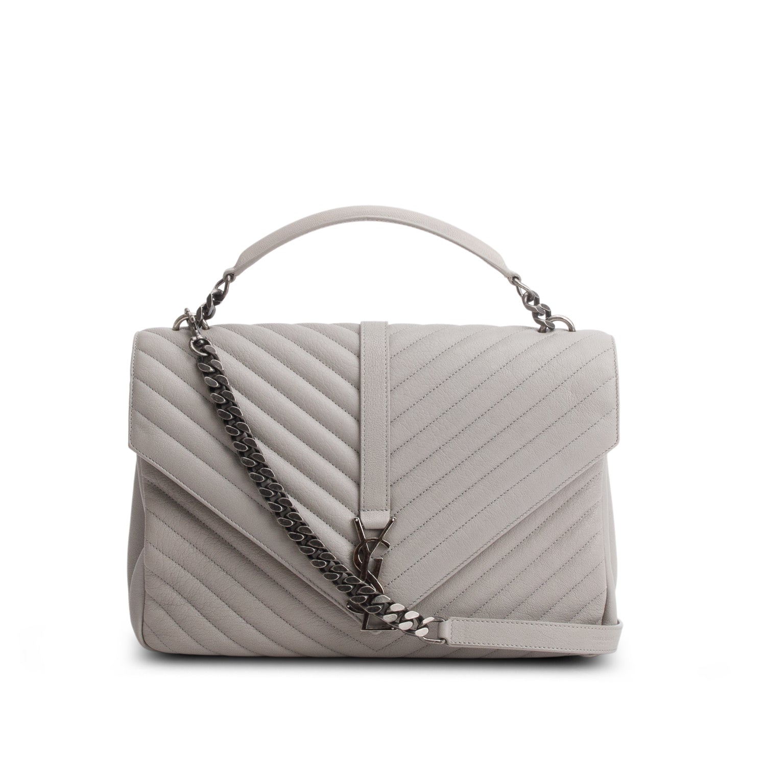 Grey Sheepskin Matelasse Chevron Monogram Large College Satchel