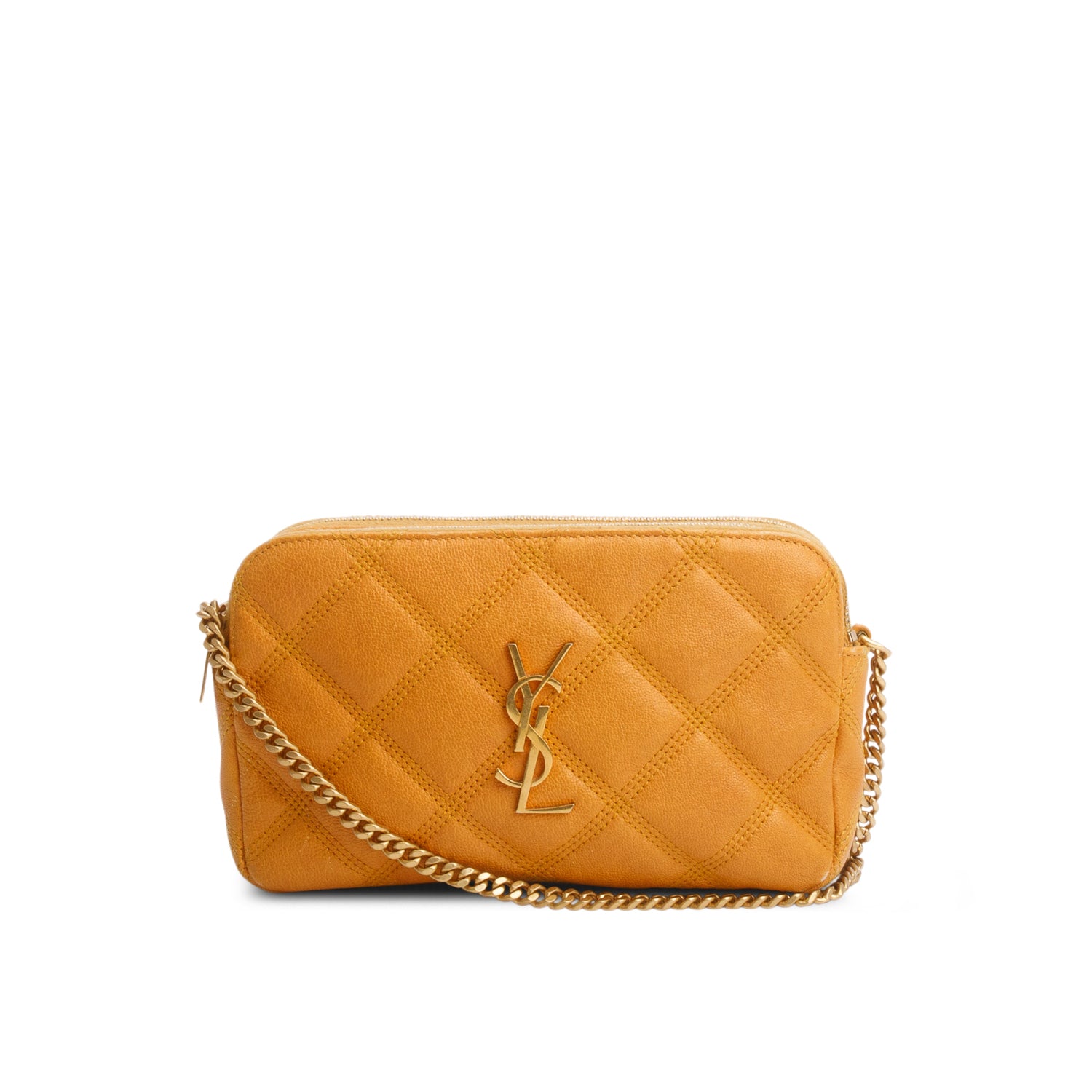 2020 Yellow Grained Lambskin Quilted Mini Becky Double Zip Bag w/ Box