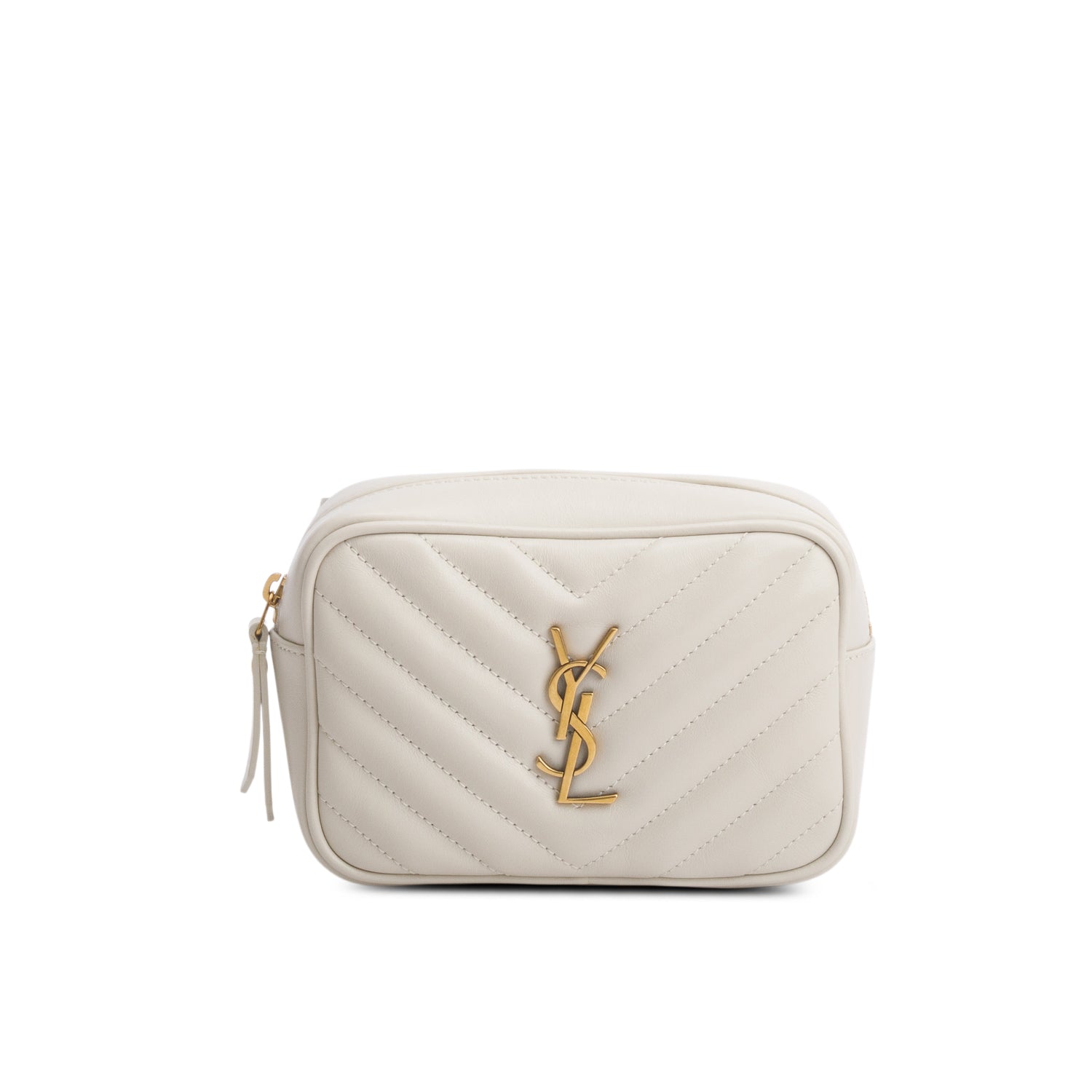 2020 White Chevron Leather Lou Camera Belt Bag