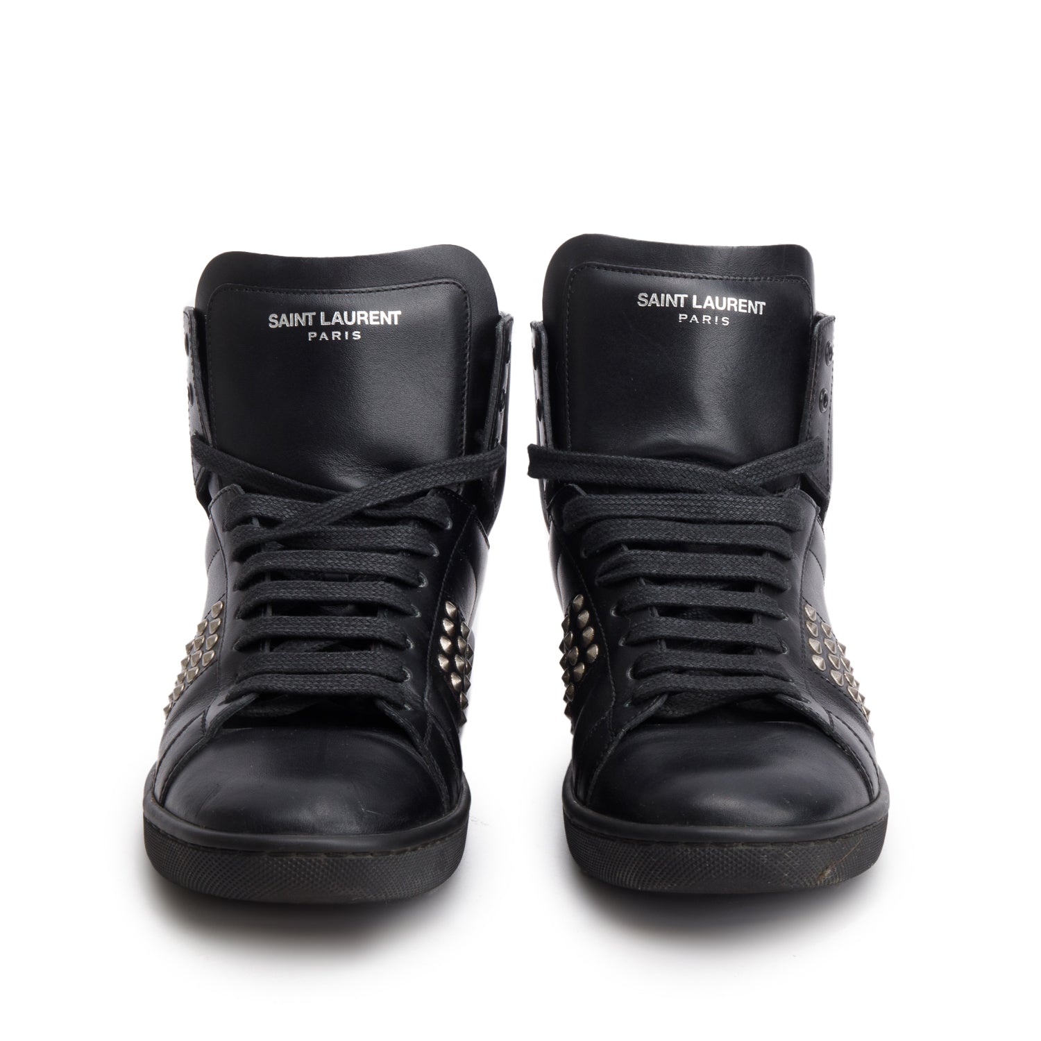Black Leather Studded High Top Sneakers, Size 37 w/ Box