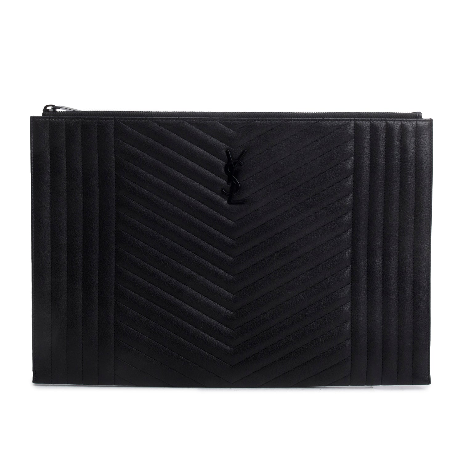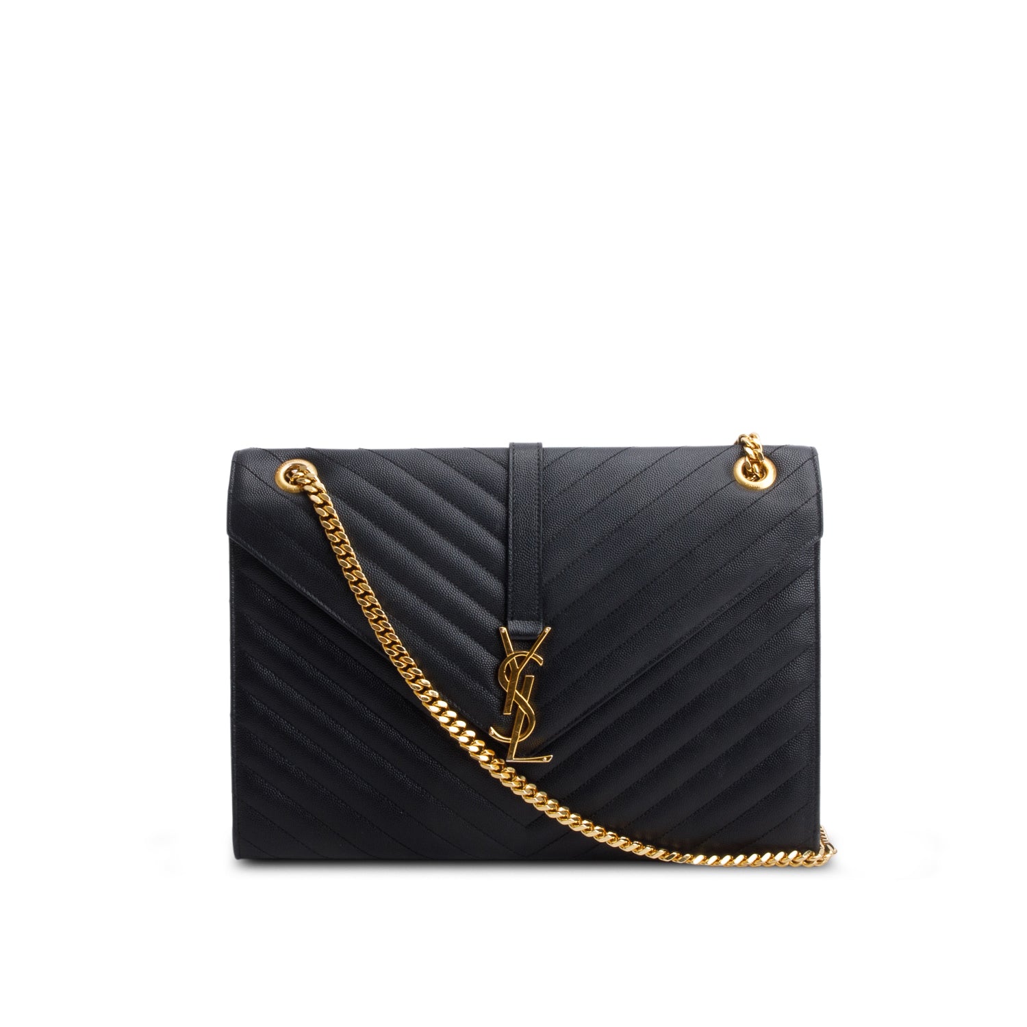 Saint Lauren Black Grain de Poudre Matelasse Large Monogram Envelope Bag