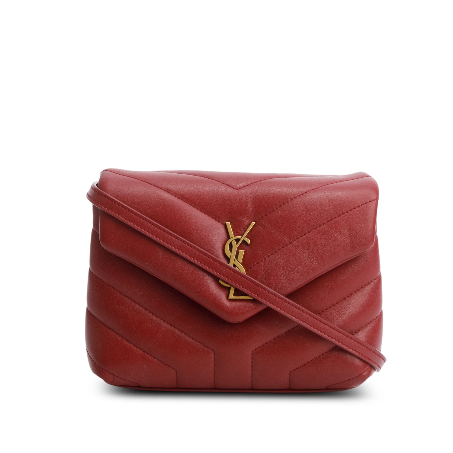 2021 Red Calfskin Y Quilted Monogram Toy Loulou Crossbody Bag w/ Box