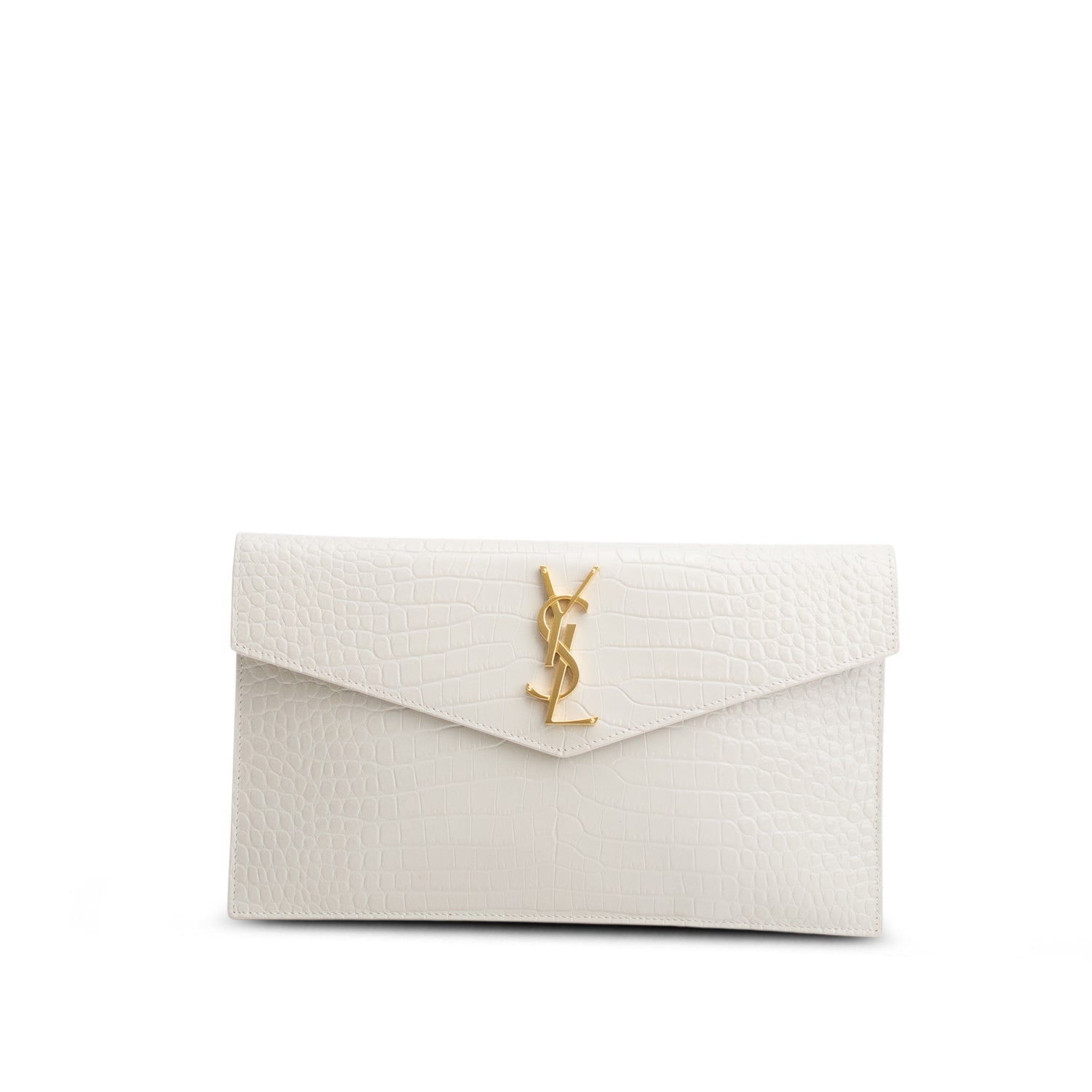 2022 Cream Calfskin Croc Embossed Uptown Monogram Pouch
