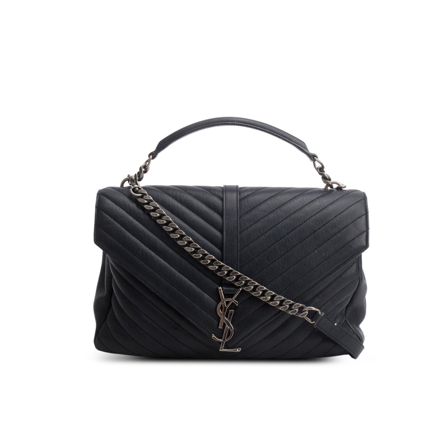 Black Sheepskin Chevron Monogram Large College Satchel
