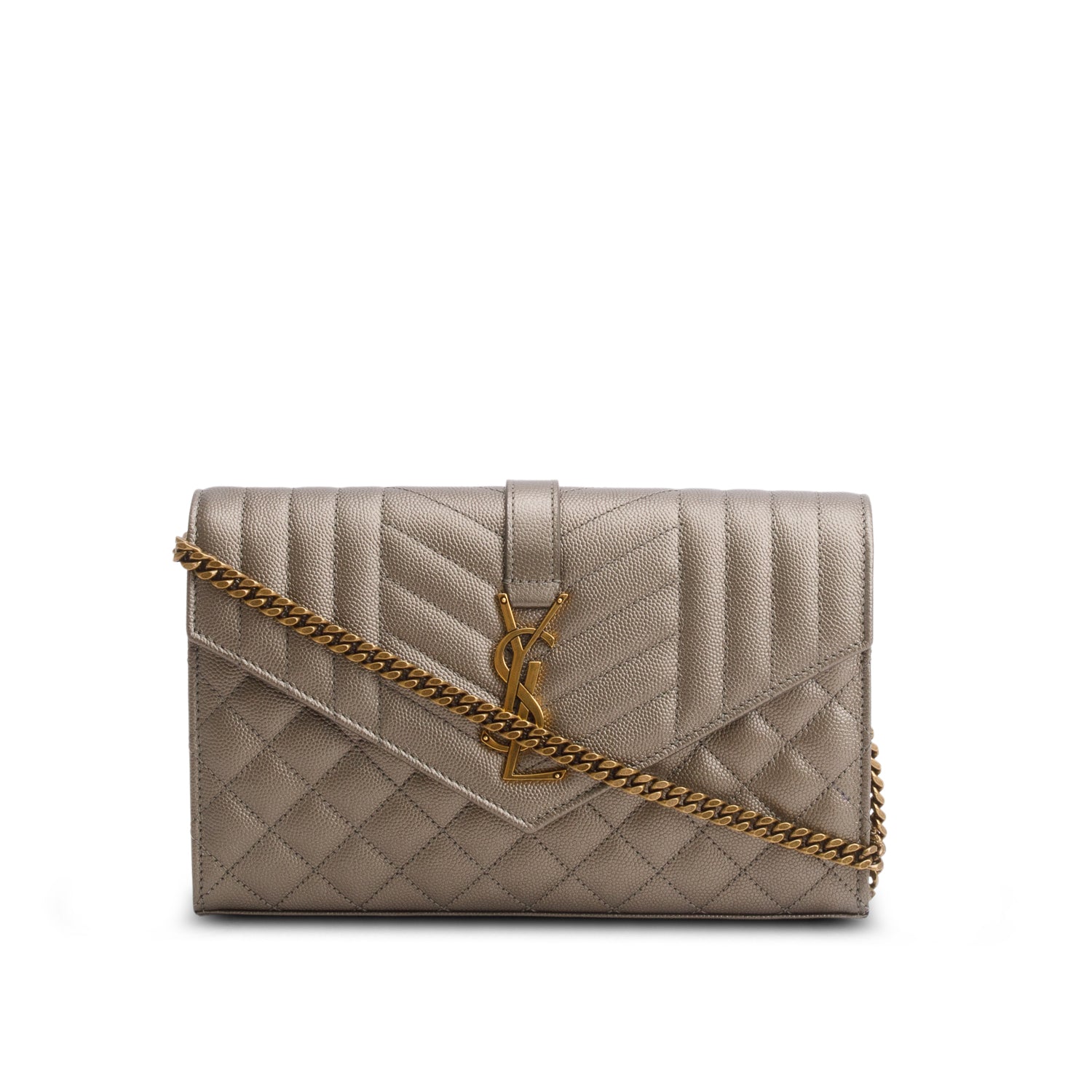 Grey Cassandre Matelasse Envelope Chain Wallet