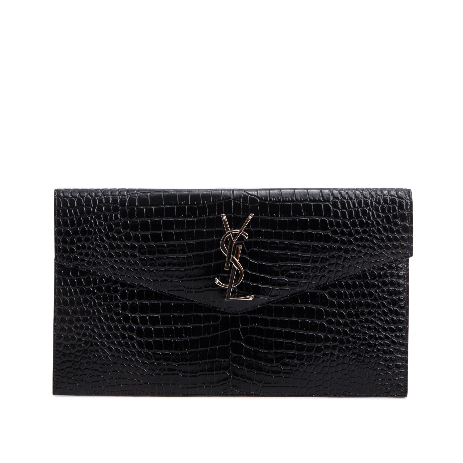 Black Calfskin Croc Embossed Uptown Monogram Pouch w/ Box