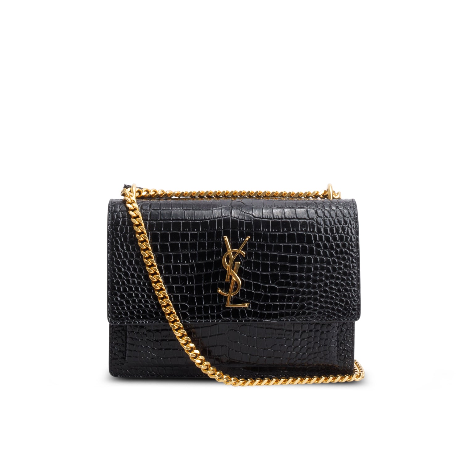 2023 Black Croc Embossed Calfskin Medium Sunset Bag