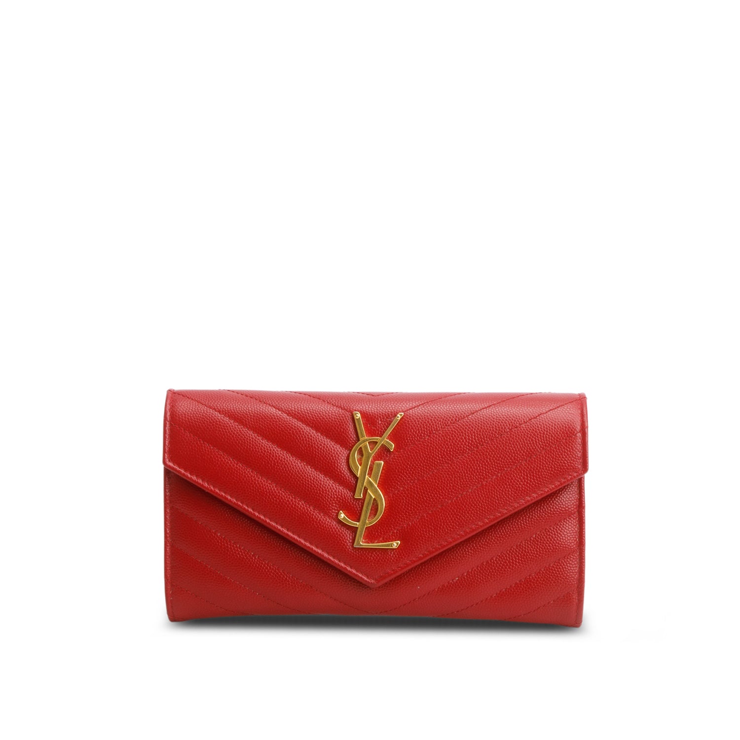 Red Grain de Poudre Matelasse Chevron Monogram Flap Wallet