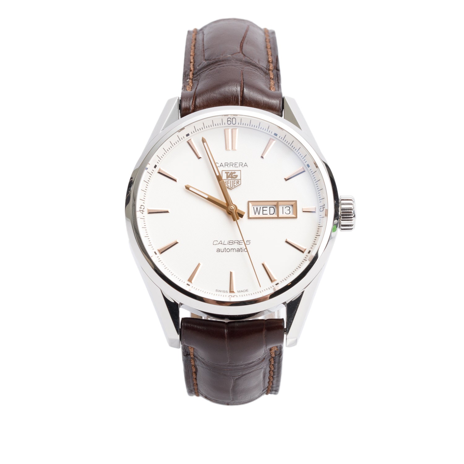 Stainless Steel Carrera Calibre 5 41 MM Automatic Watch White Dial WAR201D-1 w/ Box & Papers