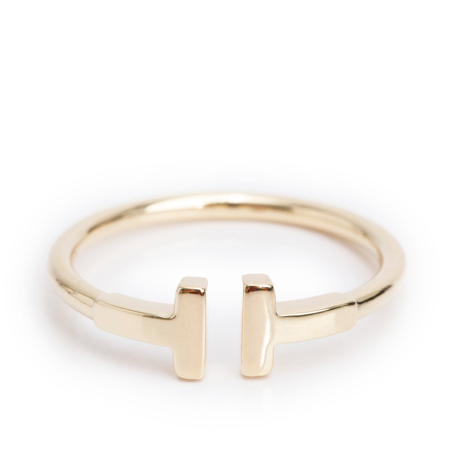 18k Yellow Gold T Wire Ring, Size 8.5 w/ Box