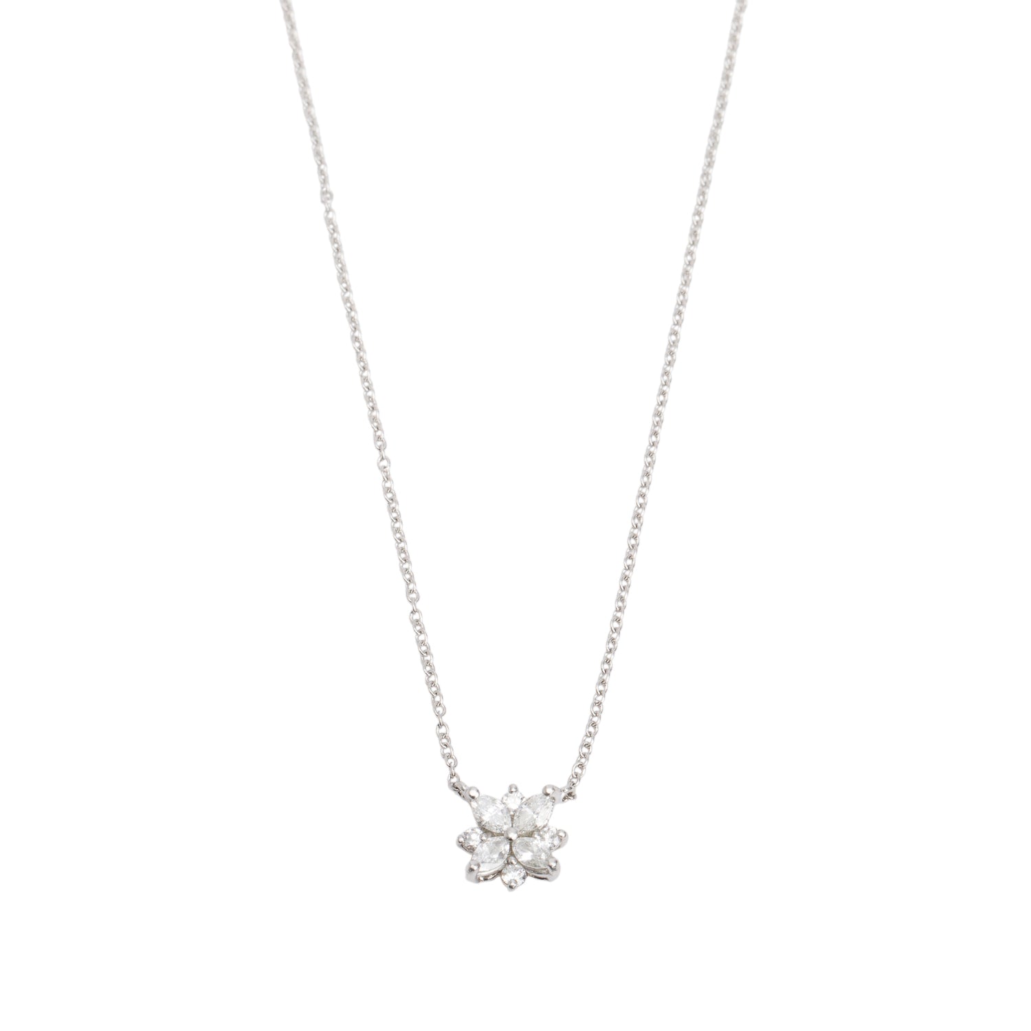 Platinum Diamond Victoria Cluster Pendant Necklace w/ Box
