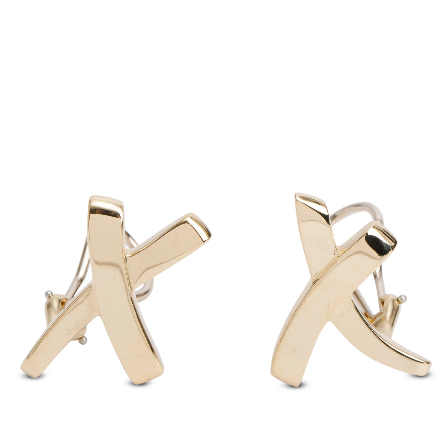Vintage Paloma Picasso 18k Yellow Gold Graffiti Medium X Earrings w/ Box