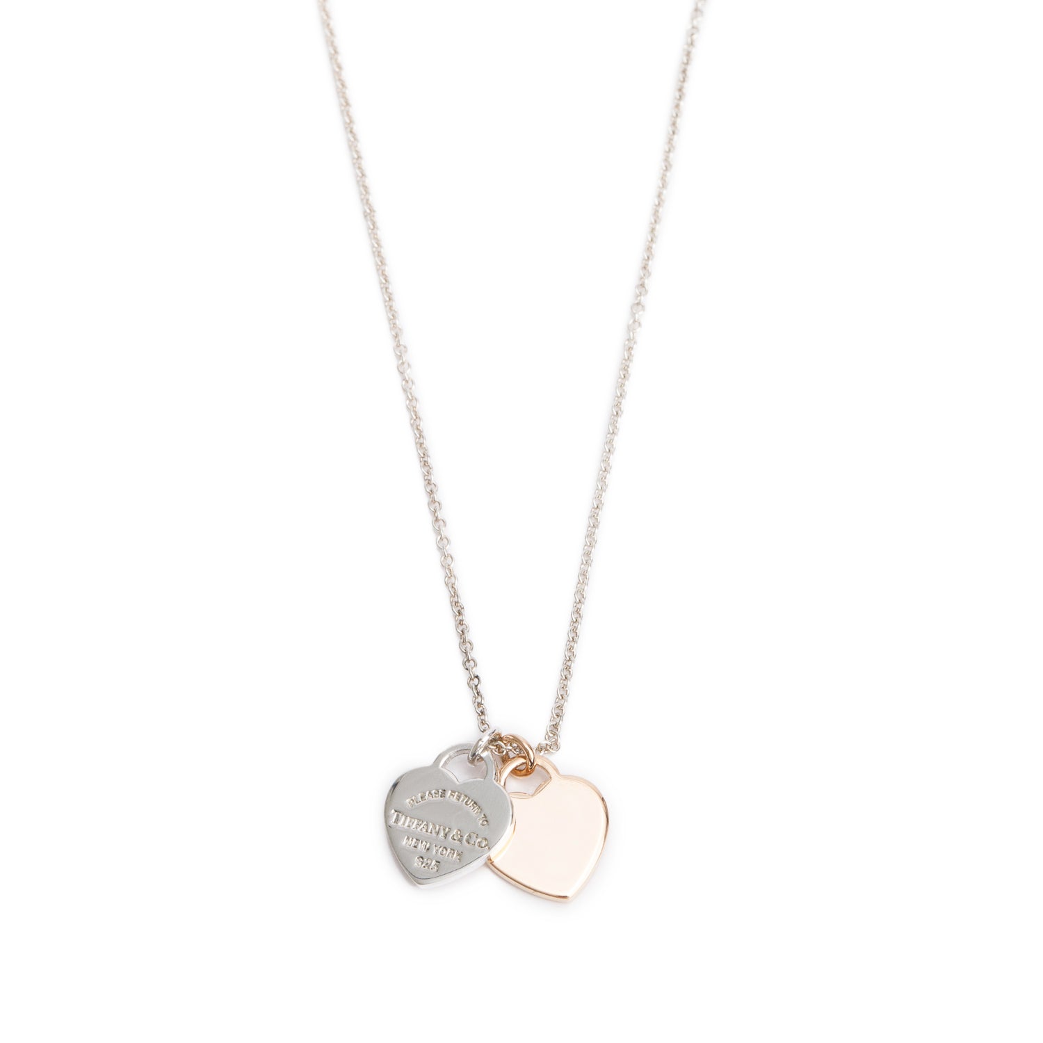 Sterling Silver & 18k Yellow Gold Return to Tiffany Mini Double Heart Tag Pendant Necklace