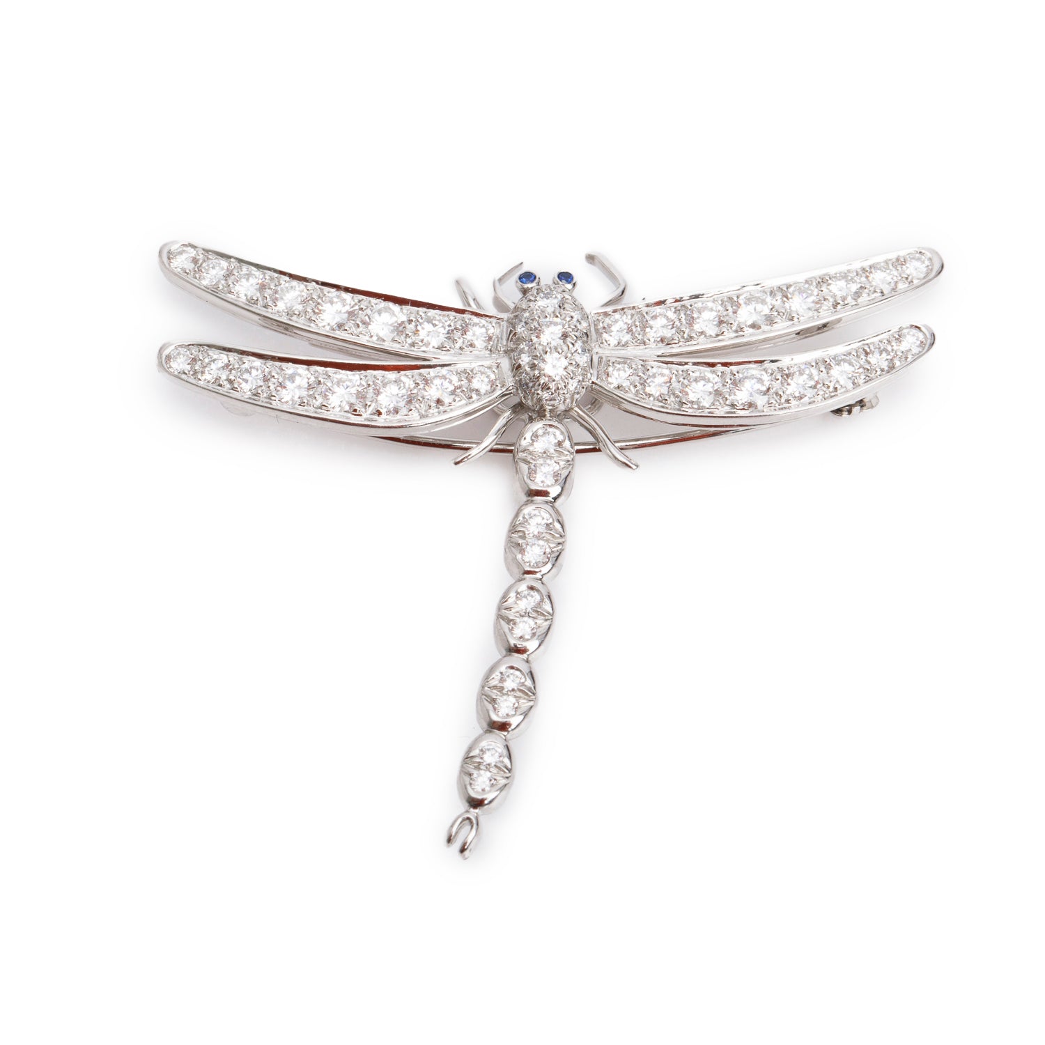Platinum Diamiond Dragonfly Brooch w/ Box