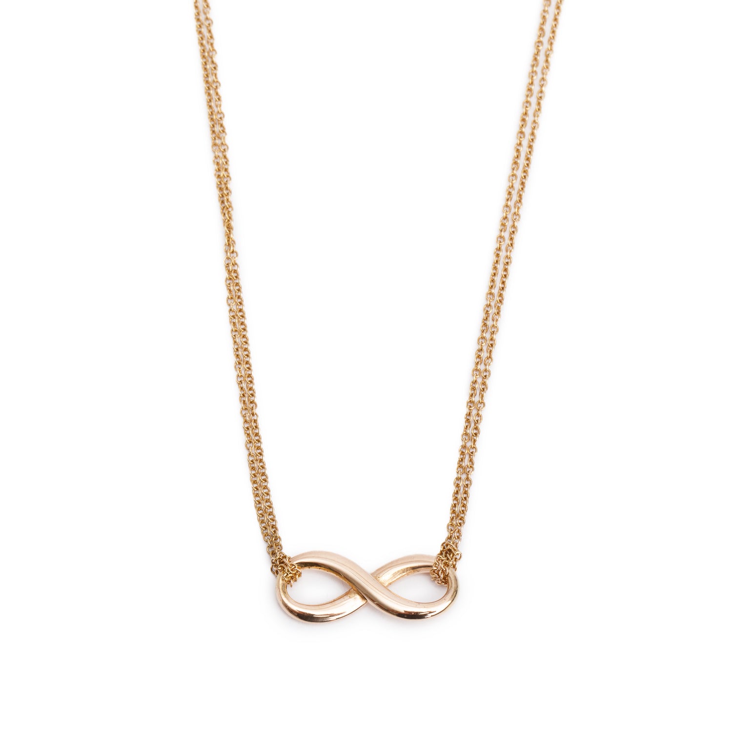 18k Yellow Gold Double Chain Infinity Pendant Necklace w/ Box