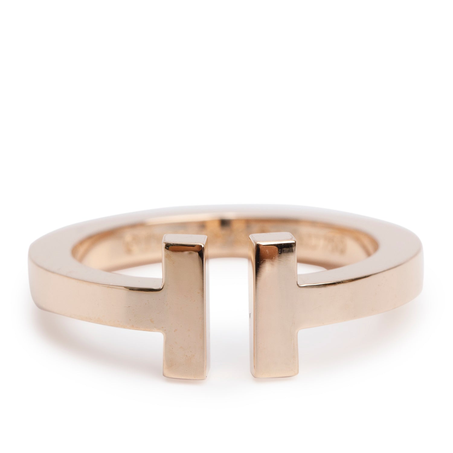 18k Rose Gold T Square Ring, Size 7.25 w/ Box