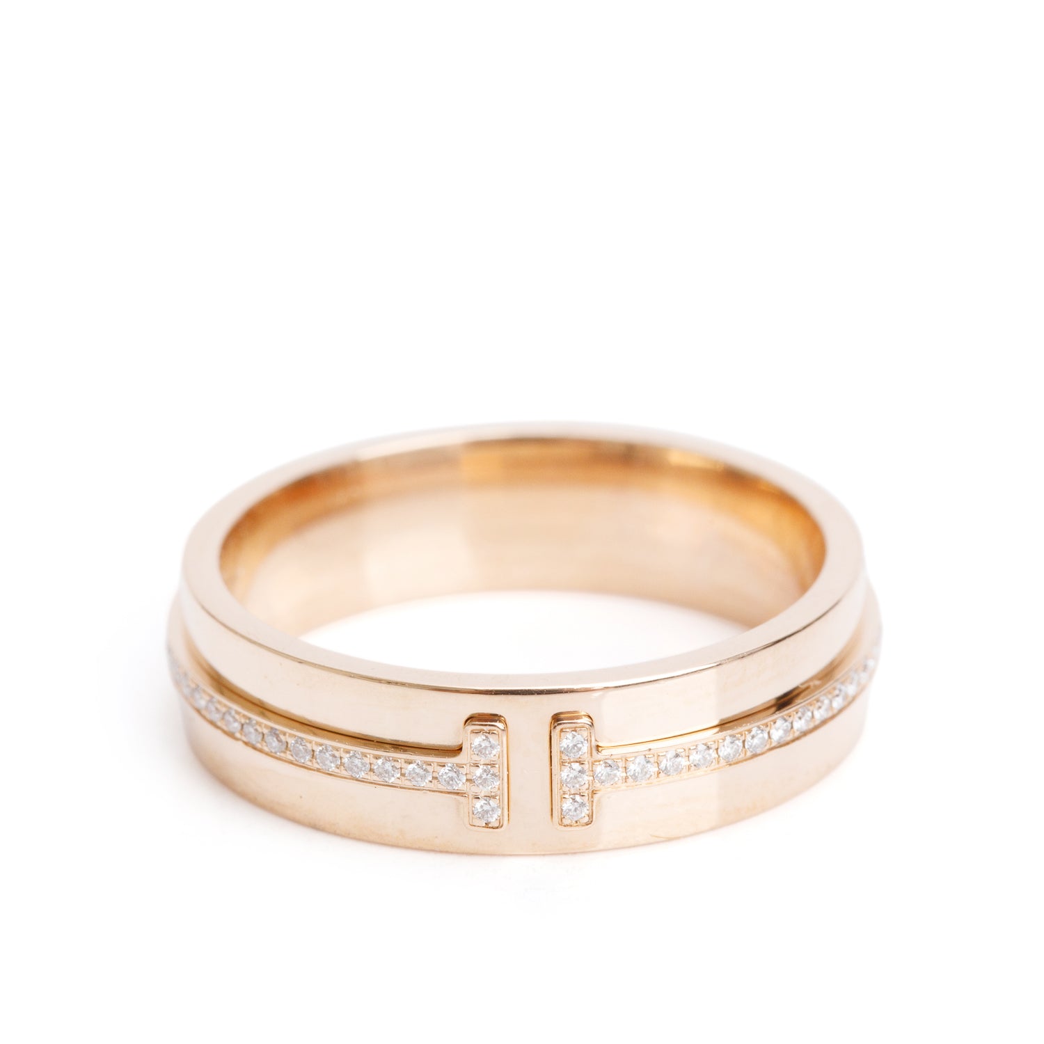 18k Rose Gold Diamond T 5.5 MM Wide Ring, Size 8 w/ Box & Receipt