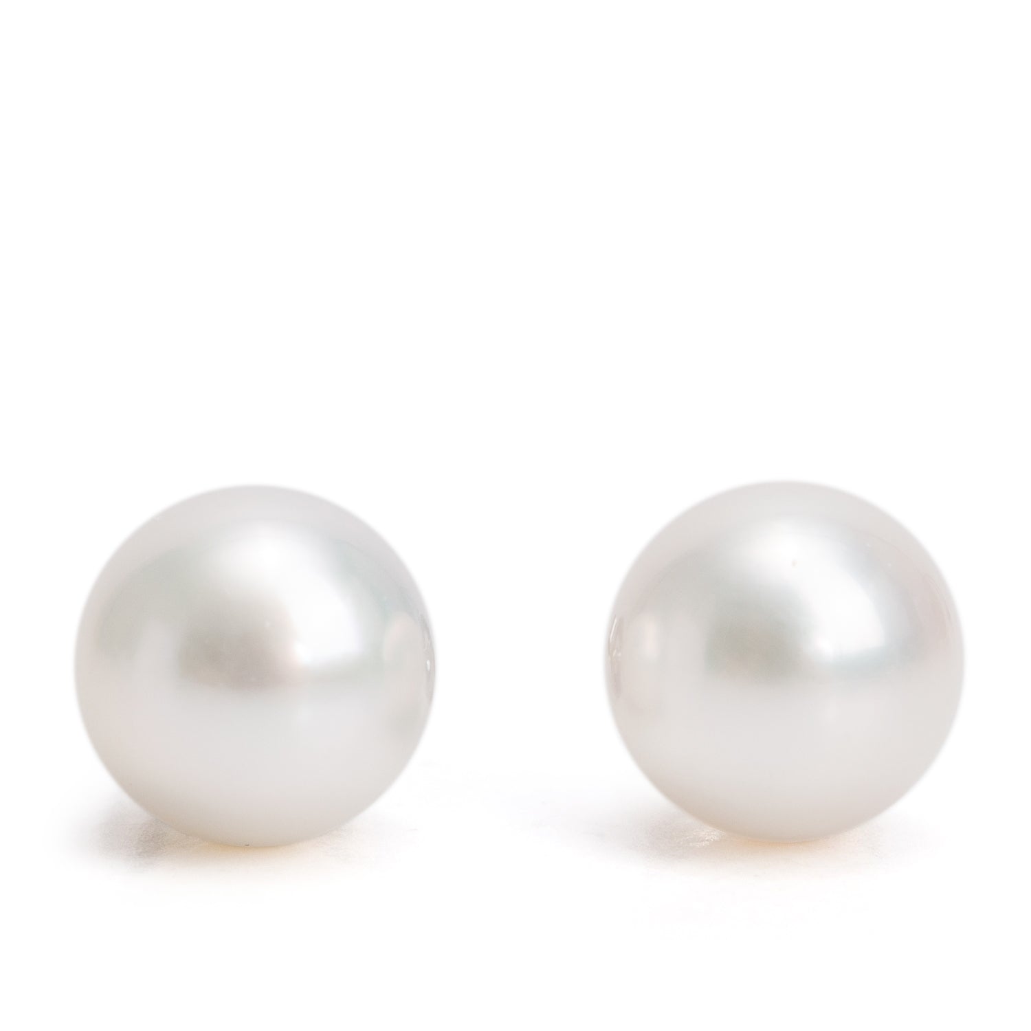 18k White Gold Signature Pearl Stud Earrings, 7.5-8 MM w/ Box