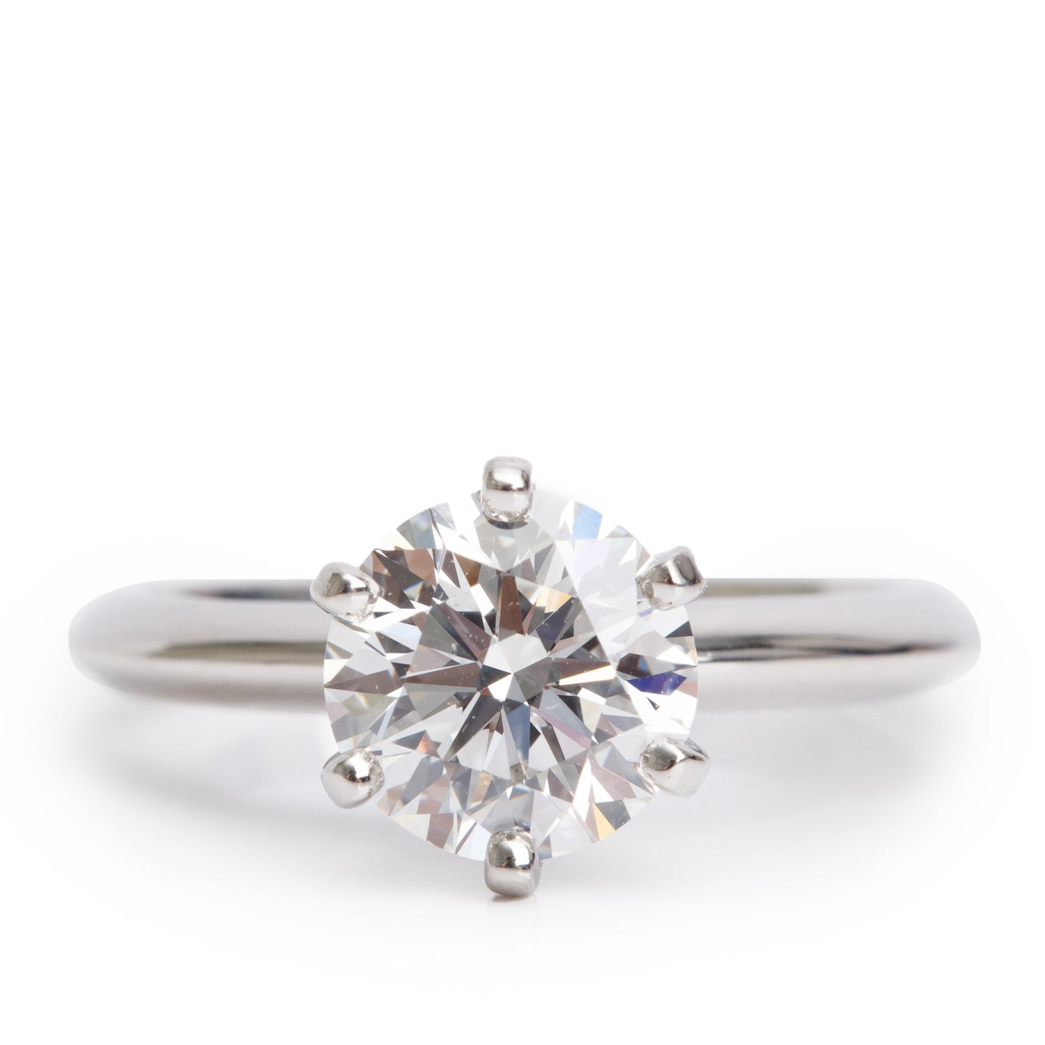 Platinum 1.87 ct. Diamond Solitaire Engagement Ring, Size 6 w/ Box & Papers
