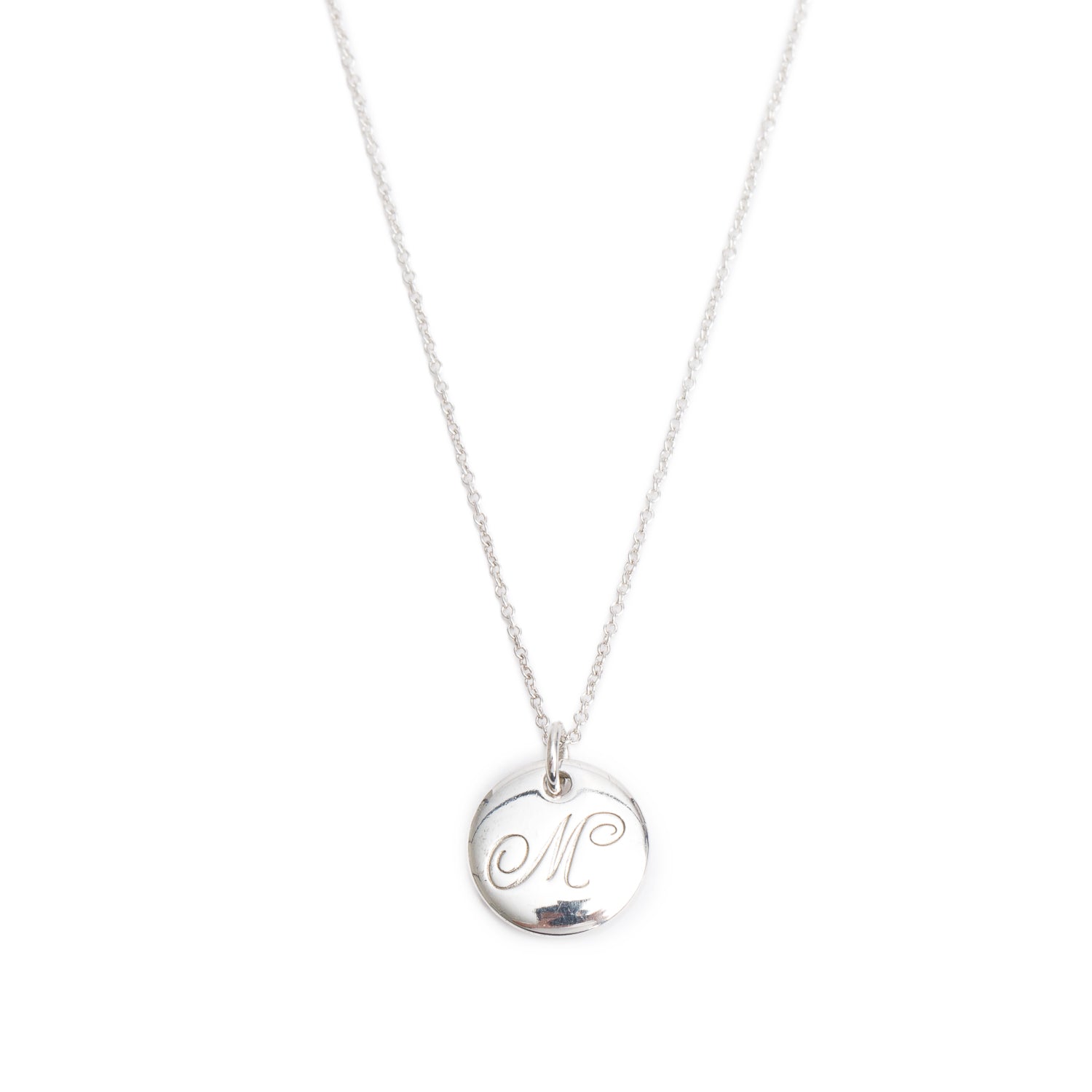 Sterling Silver Notes Letter 'M' Disc Charm Pendant Necklace