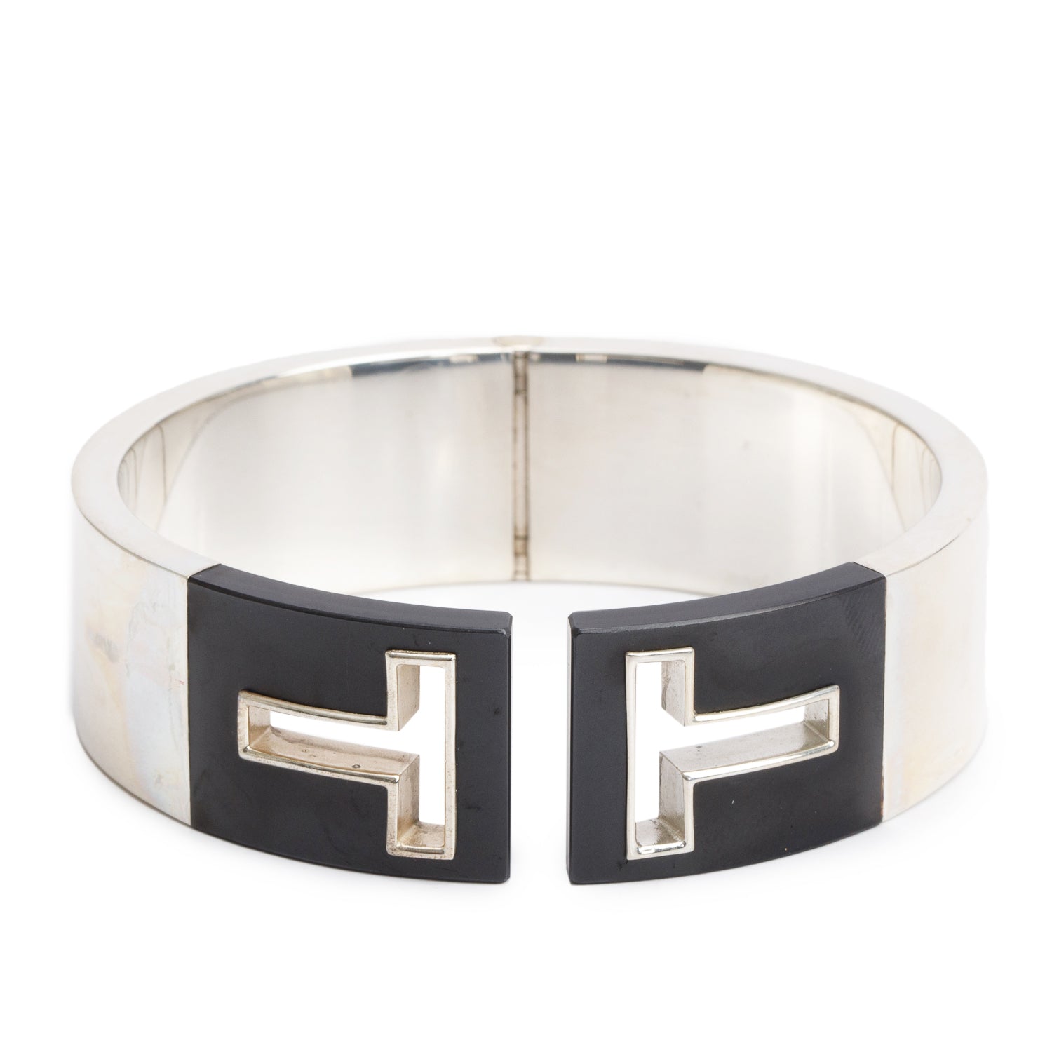 Sterling Silver & Black Ceramic T Cutout Cuff Bracelet w/ Box