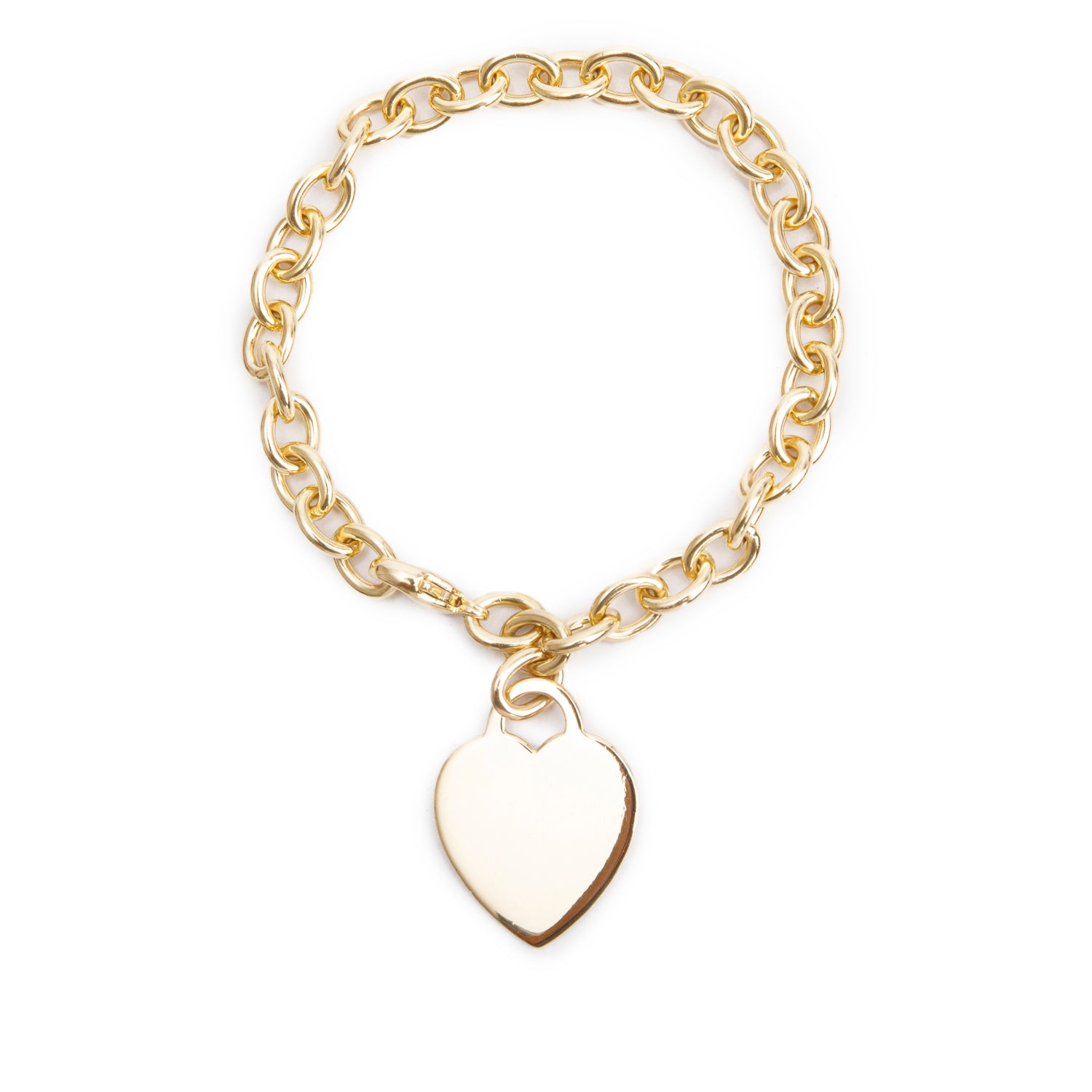 18k Yellow Gold Heart Tag Charm Bracelet w/ Box
