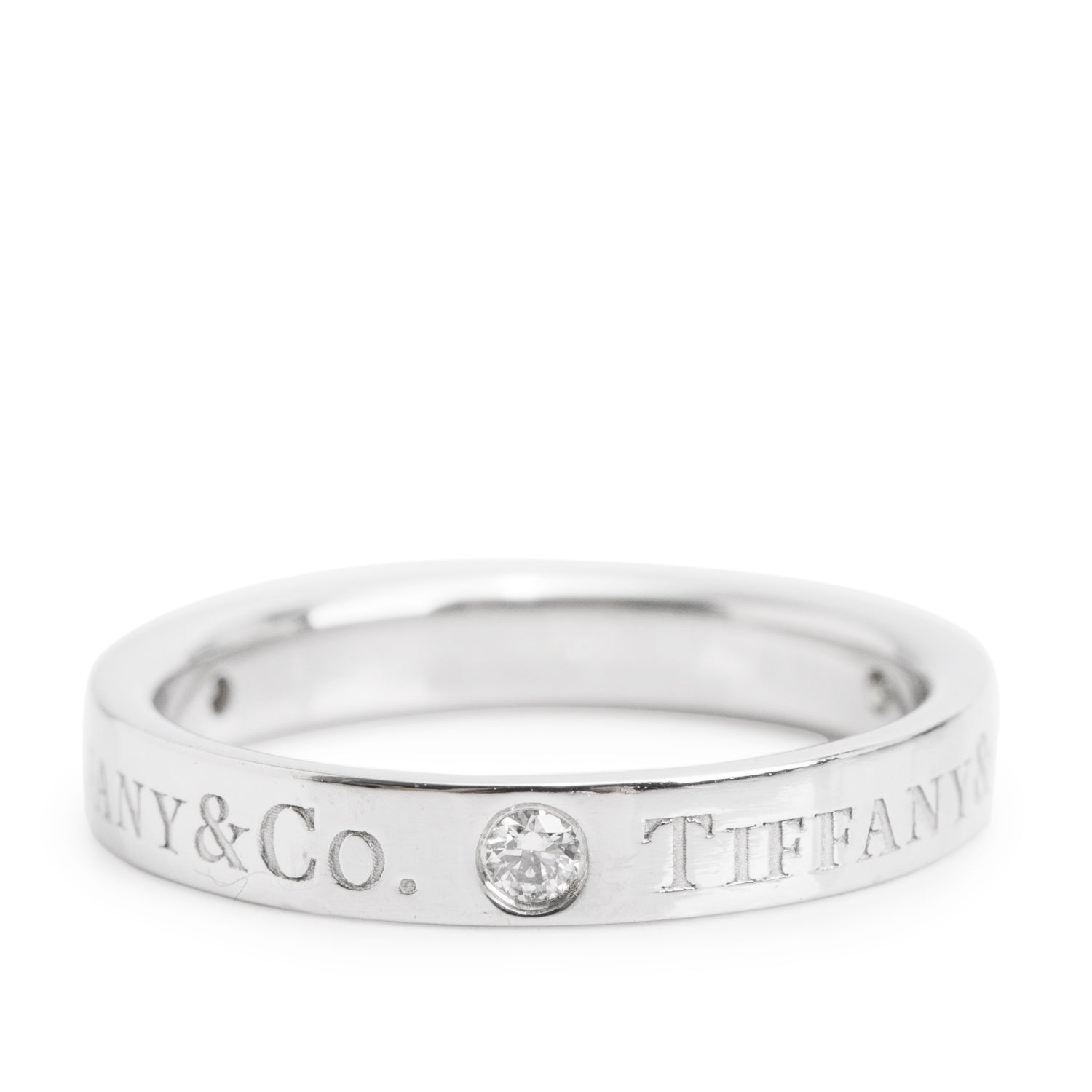 Platinum & 3 Diamond 3 MM Logo Band Ring, Size 4.75