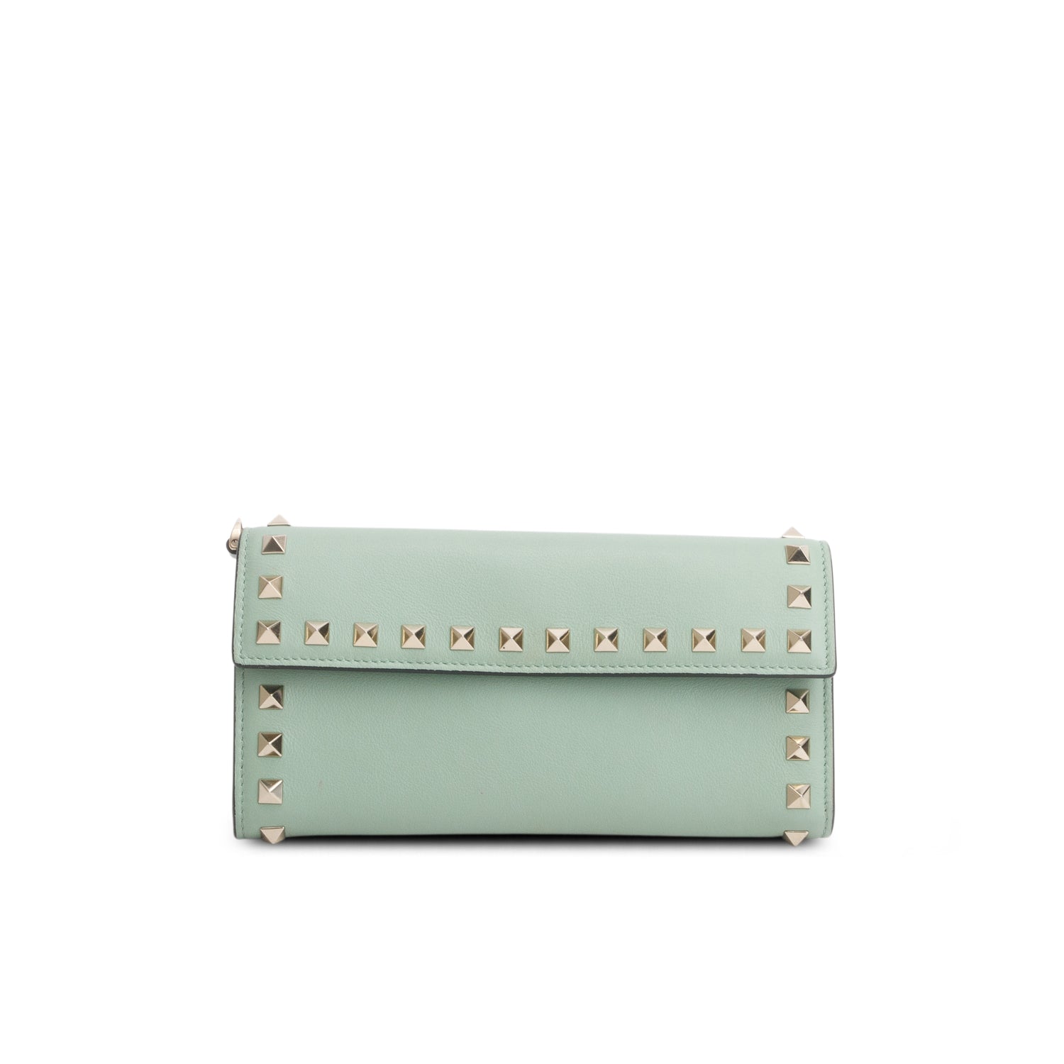 Green Calfskin Rockstud Wristlet Travel Wallet w/ Box