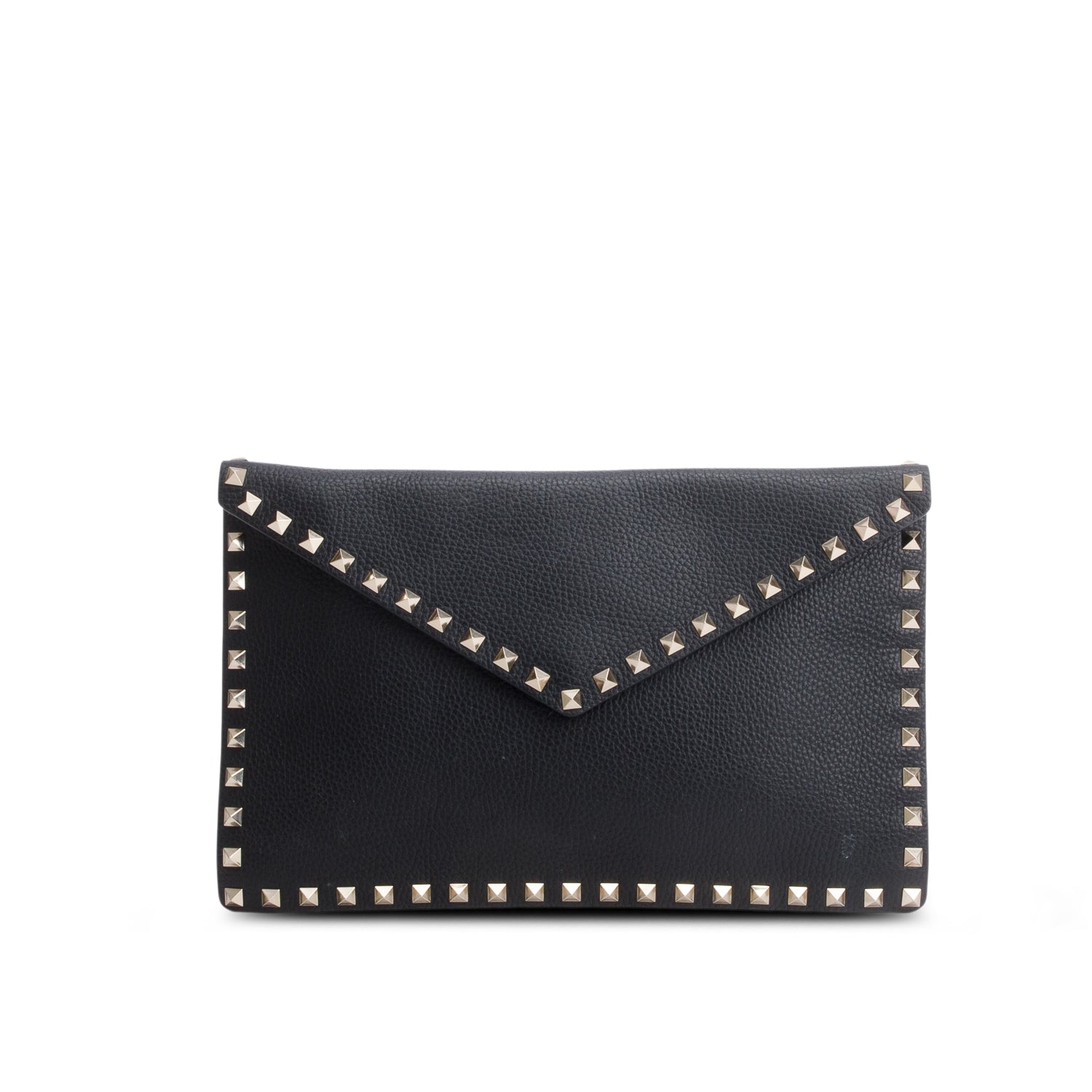 Black Pebbled Calfskin Large Rockstud Envelope Pouch w/ Box
