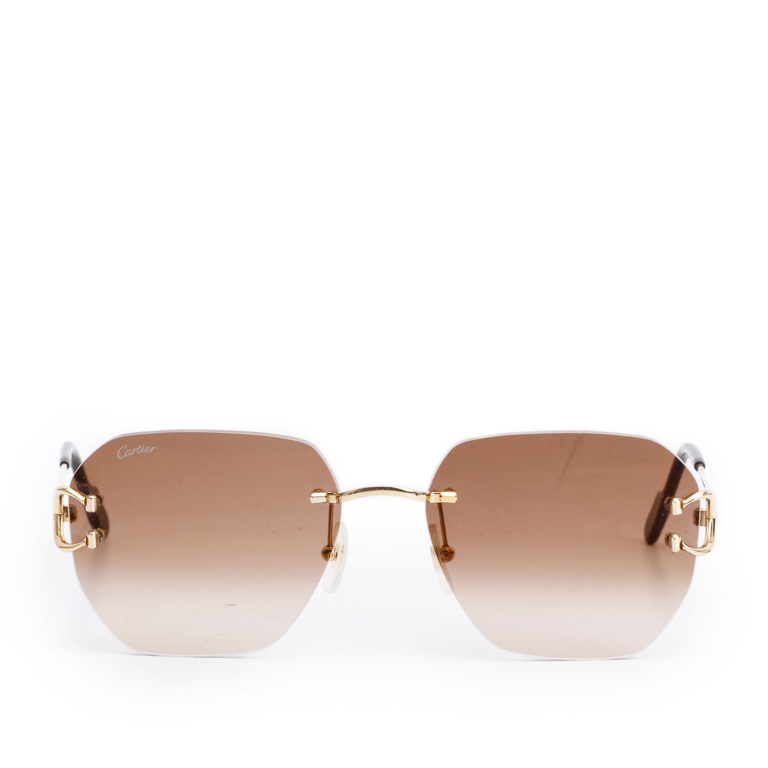 CT0050O Gold-Tone Metal Rimless Square Sunglasses w/ Box & Case