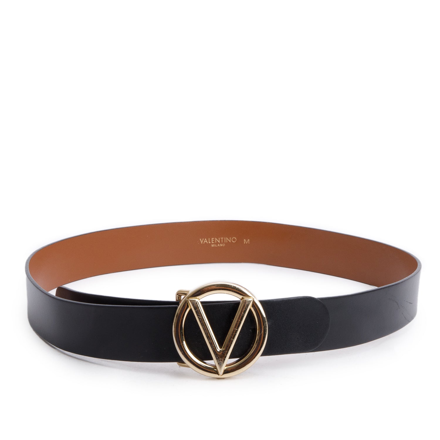 Black/Brown Leather Round Buckle Reversible Belt, Size M
