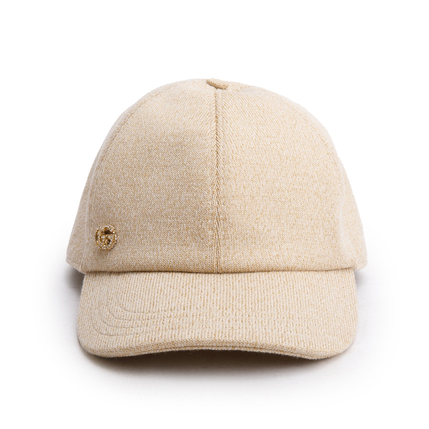 Cream Wool Lamé Crystal GG Baseball Cap, Size L 58 w/ Box