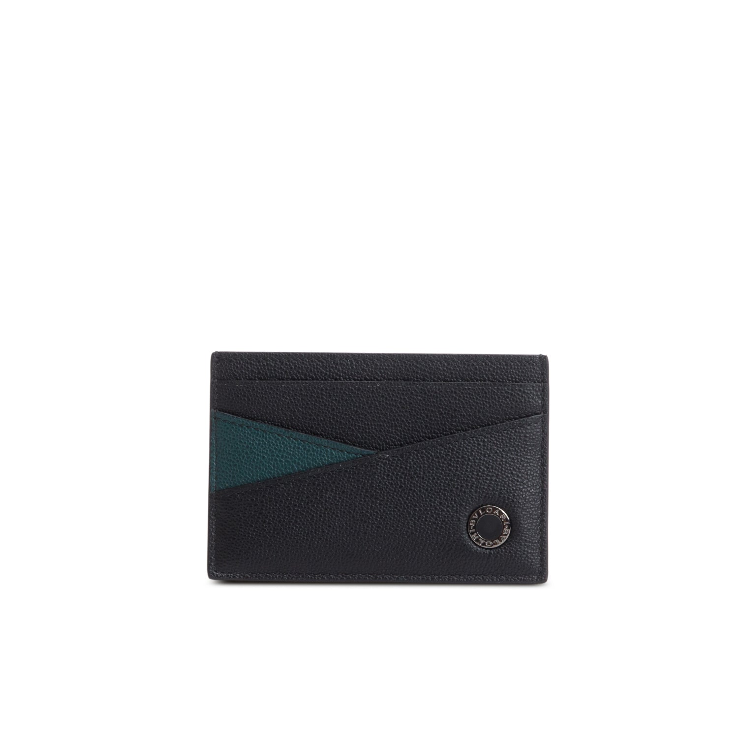 Bvlgari 2023 Black Green Grain Calf Leather Card Holder w/ Box & Authenticity Card